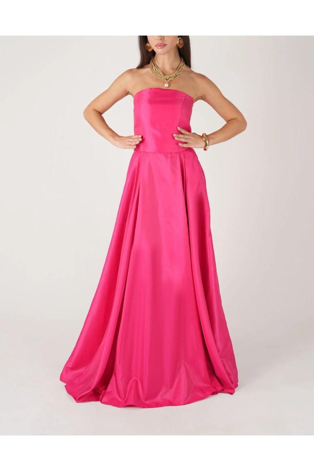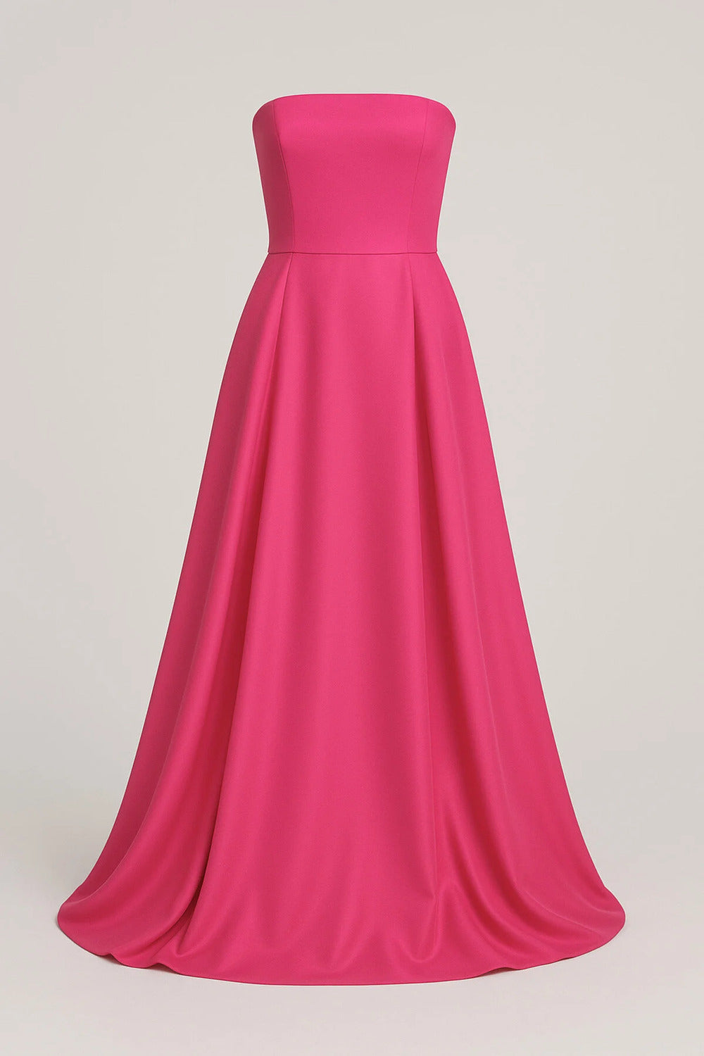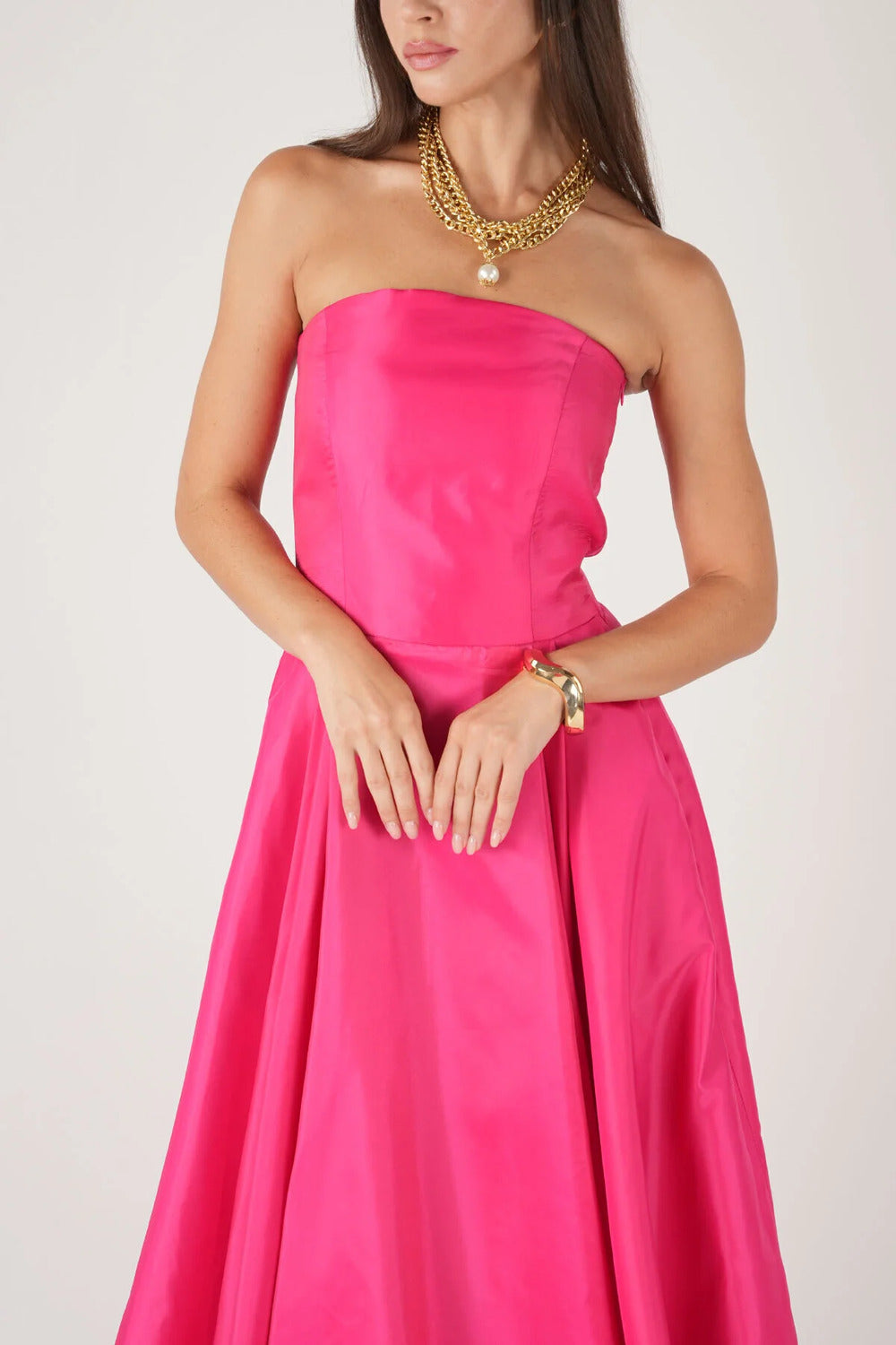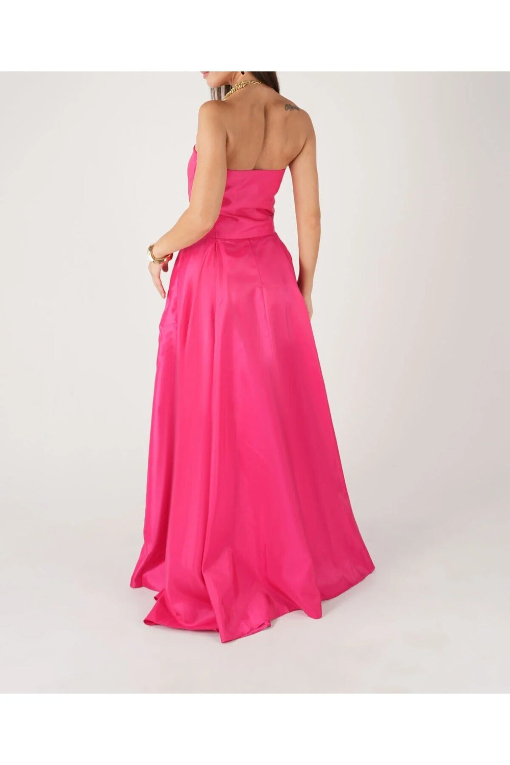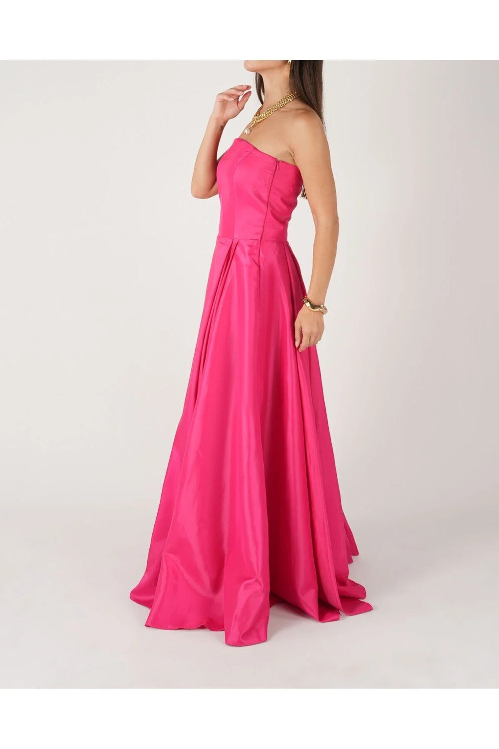 Fuşya Mat Saten Şık Maxi Straplez Elbise