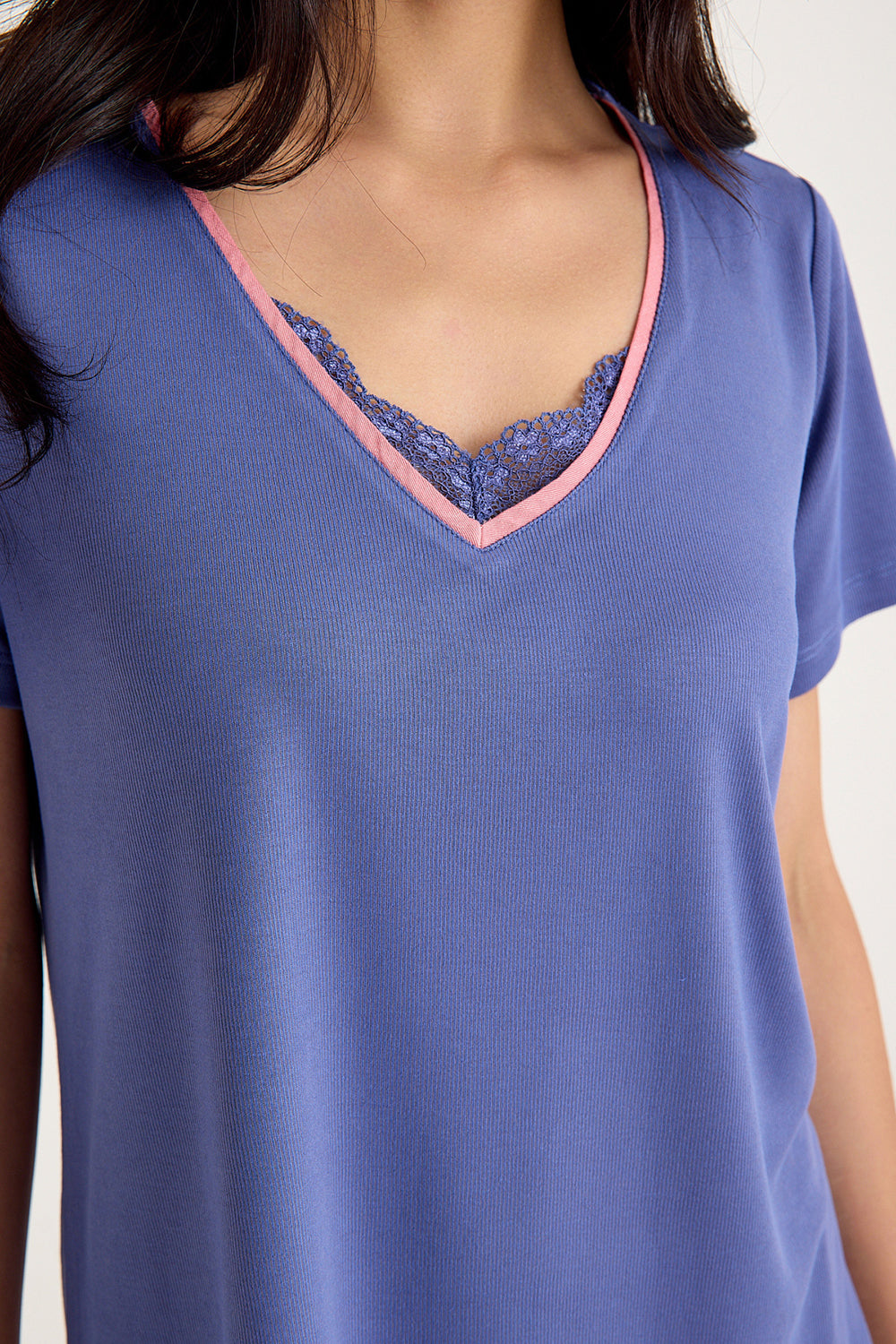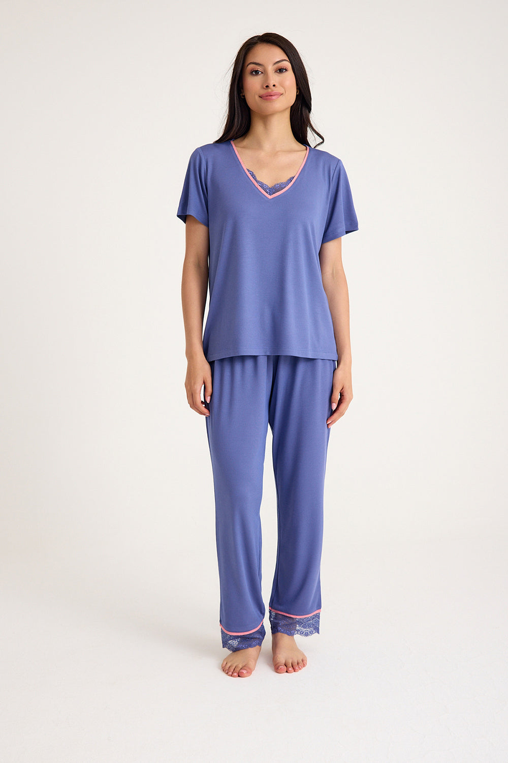 Dream Gri Mavi Viskon Kumaş Pijama Takım