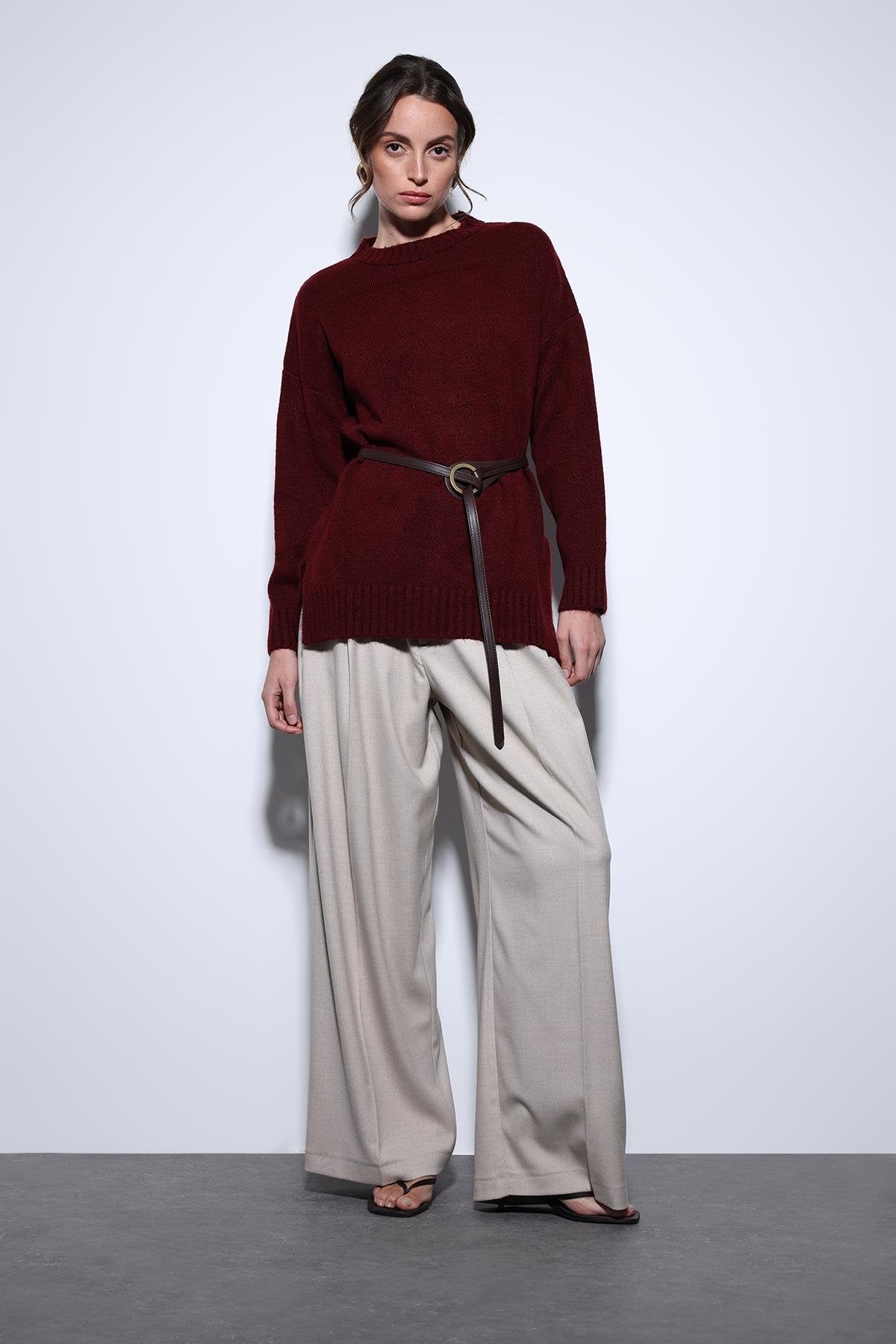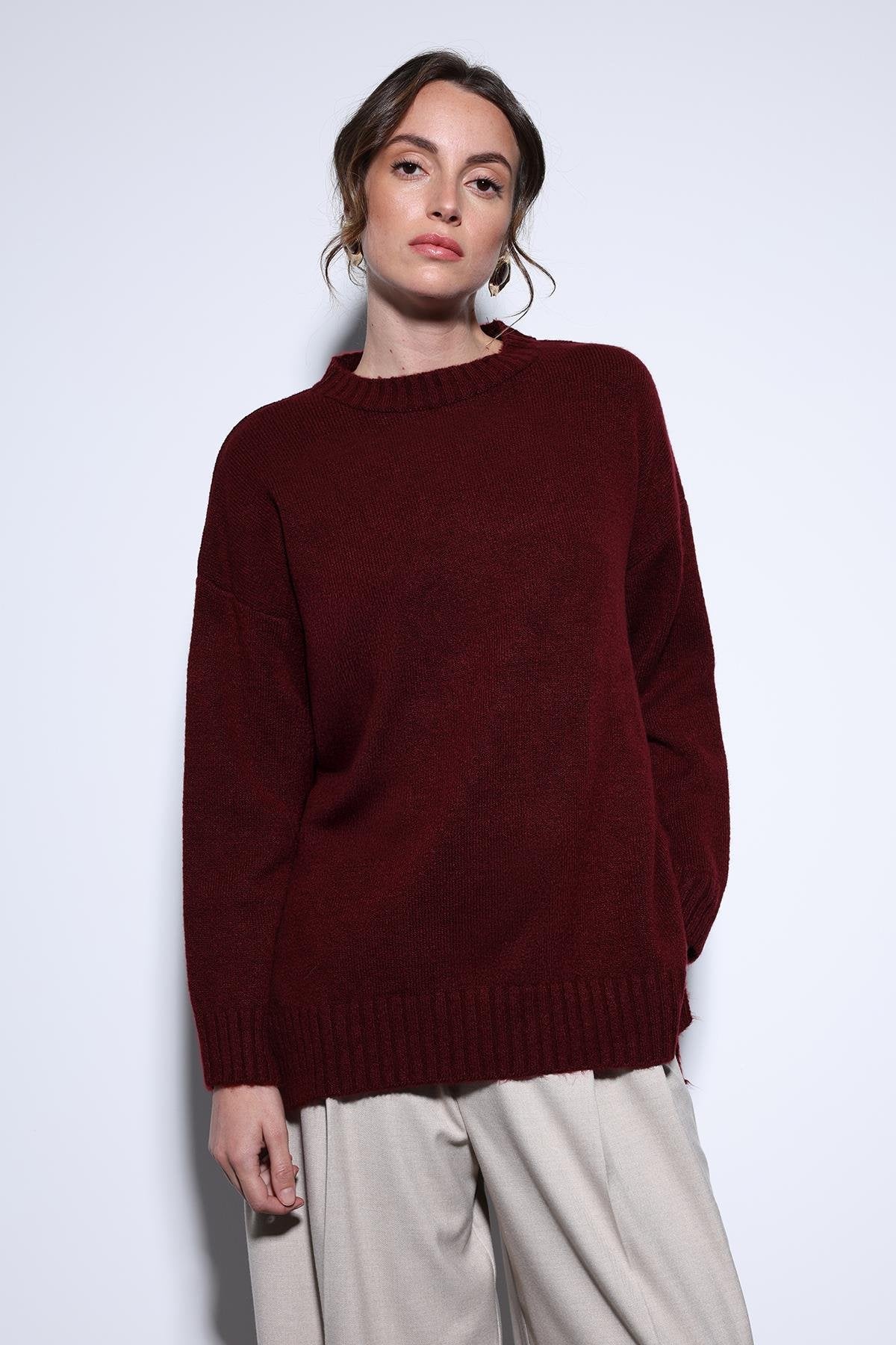 Bordo Yırtmaç Detaylı Kadın Kazak
