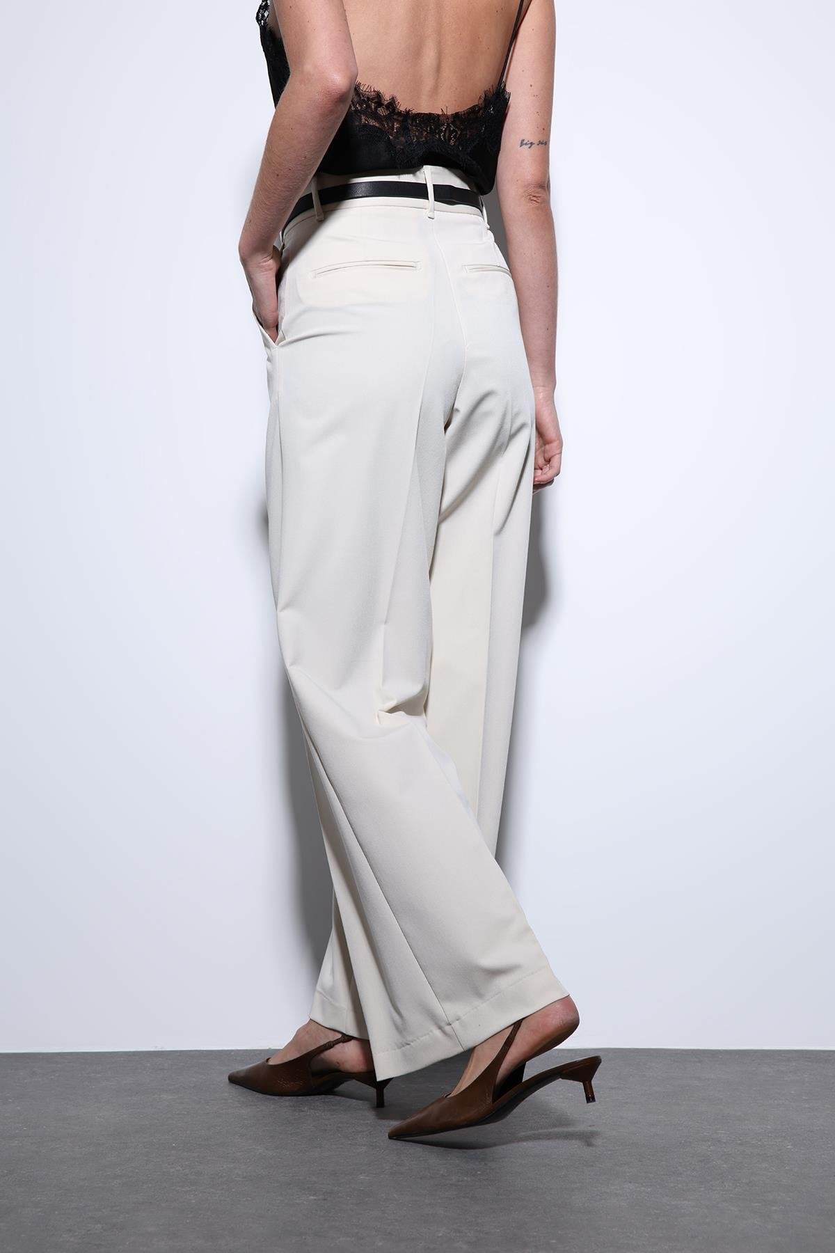 Ekru Geniş Paça Kadın Pantolon