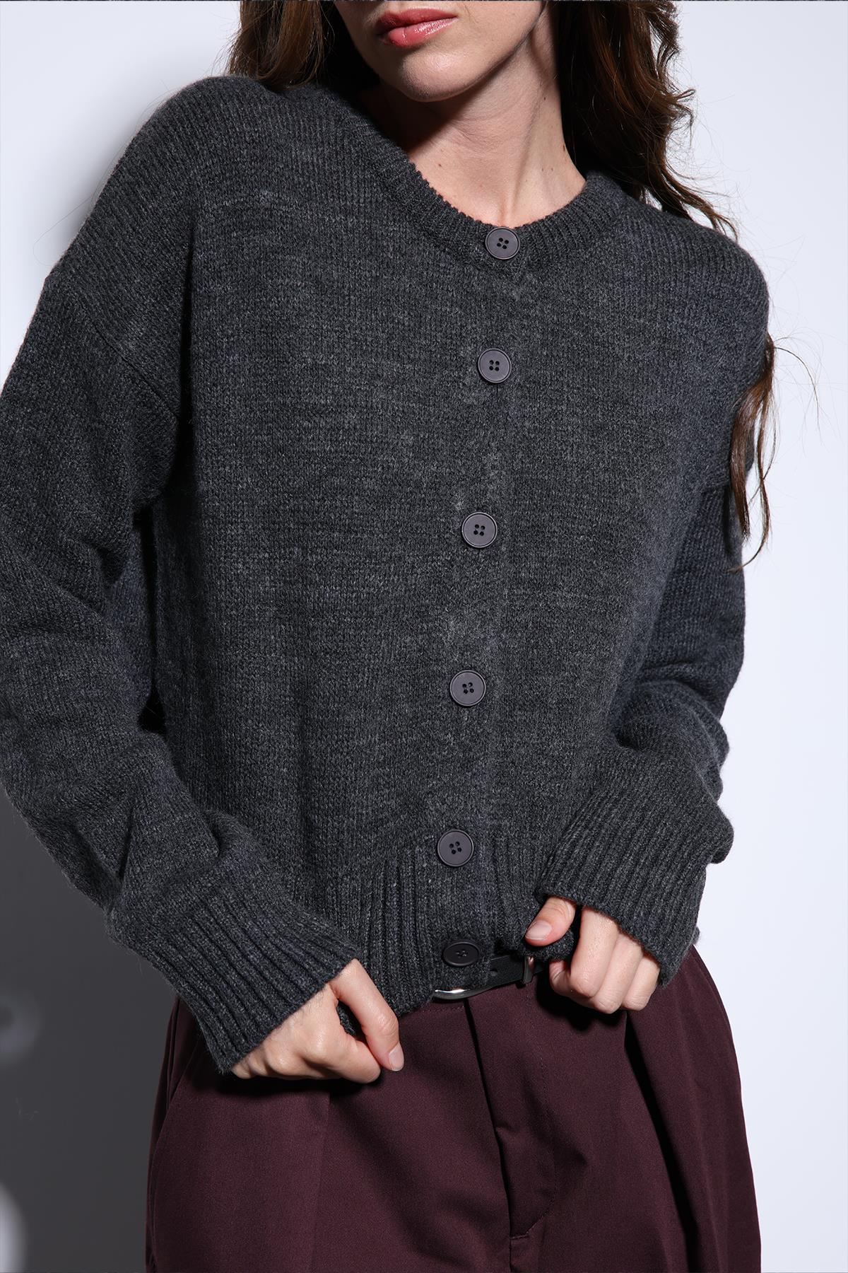 Gri Yırtmaçlı Örgü Triko Kadın Kazak