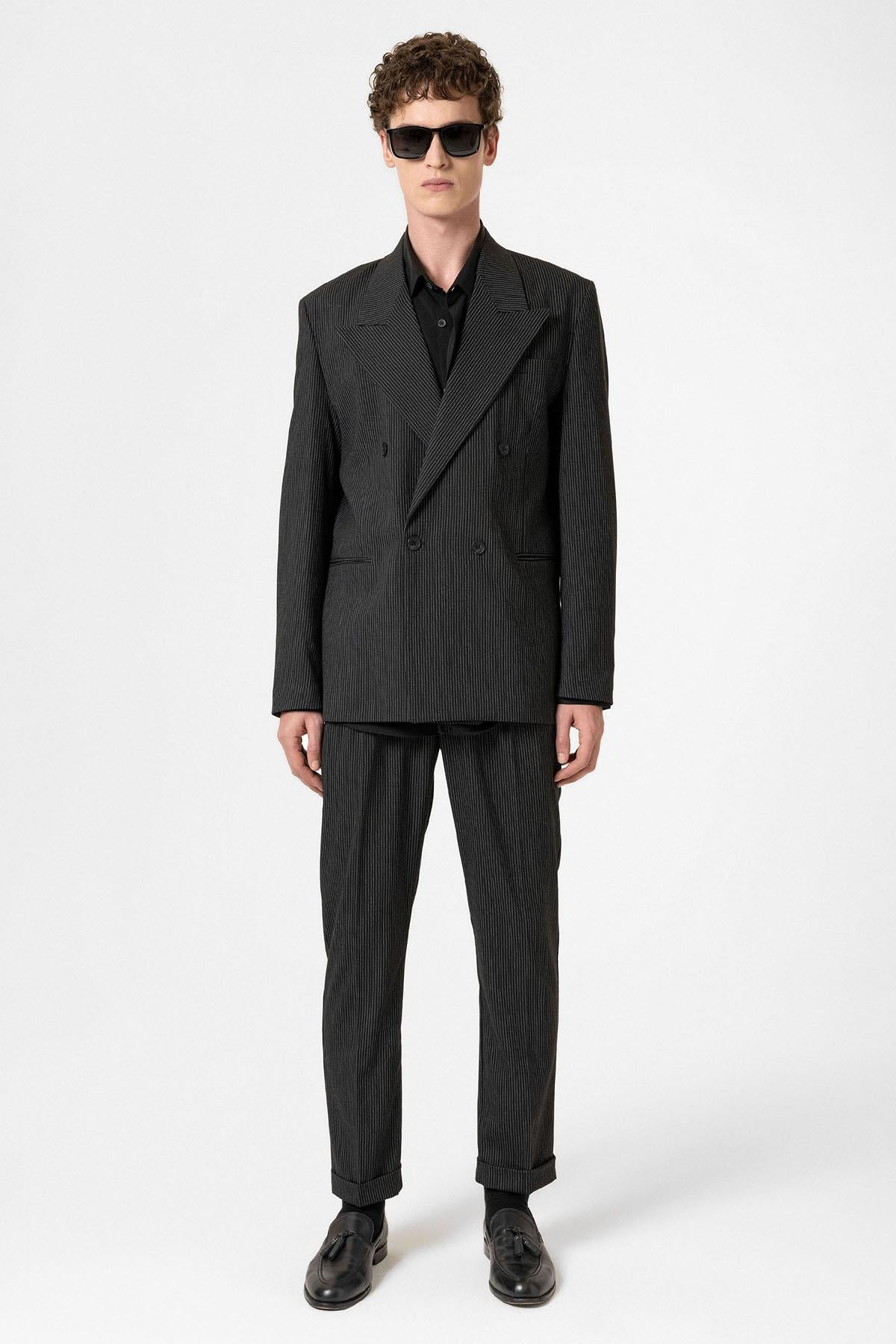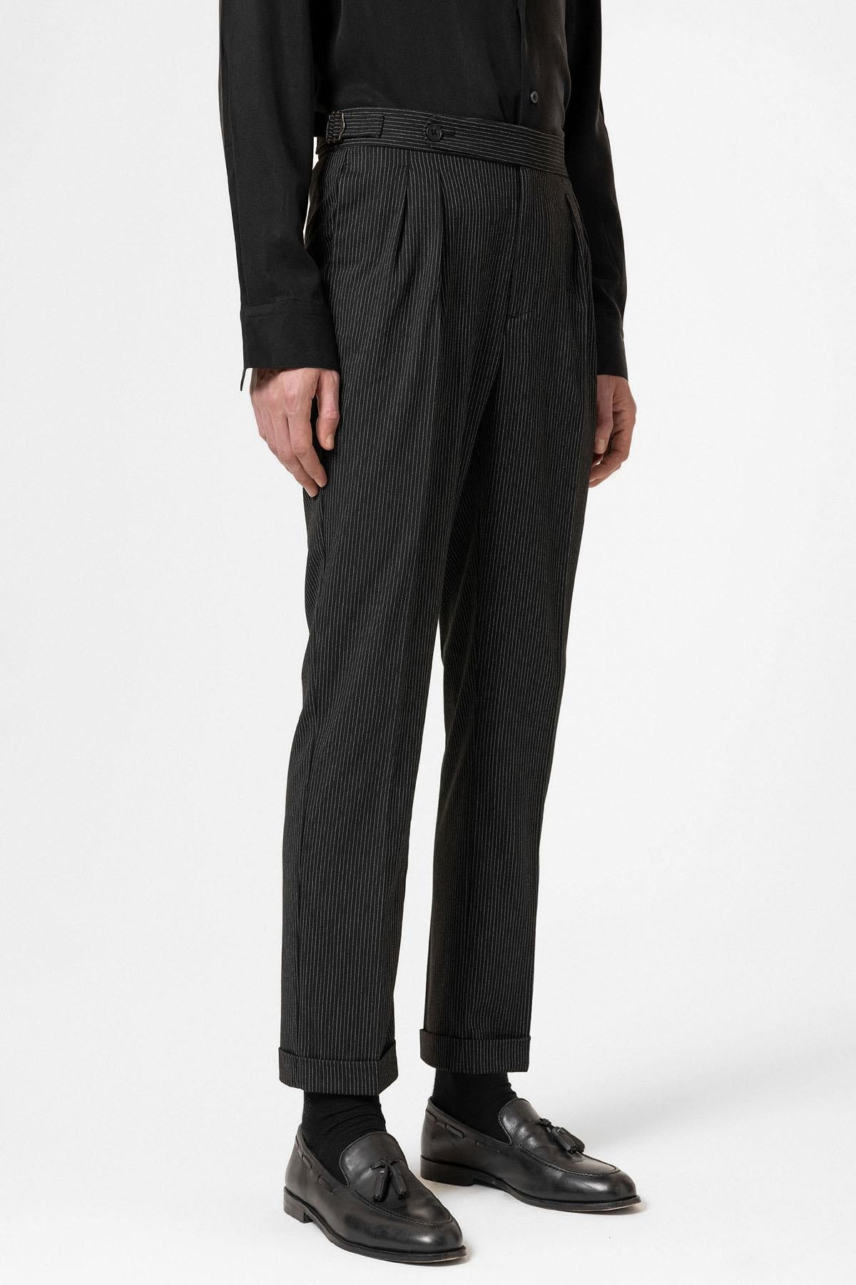 Siyah Yüksek Bel Çizgili Duble Paça Erkek Pantolon
