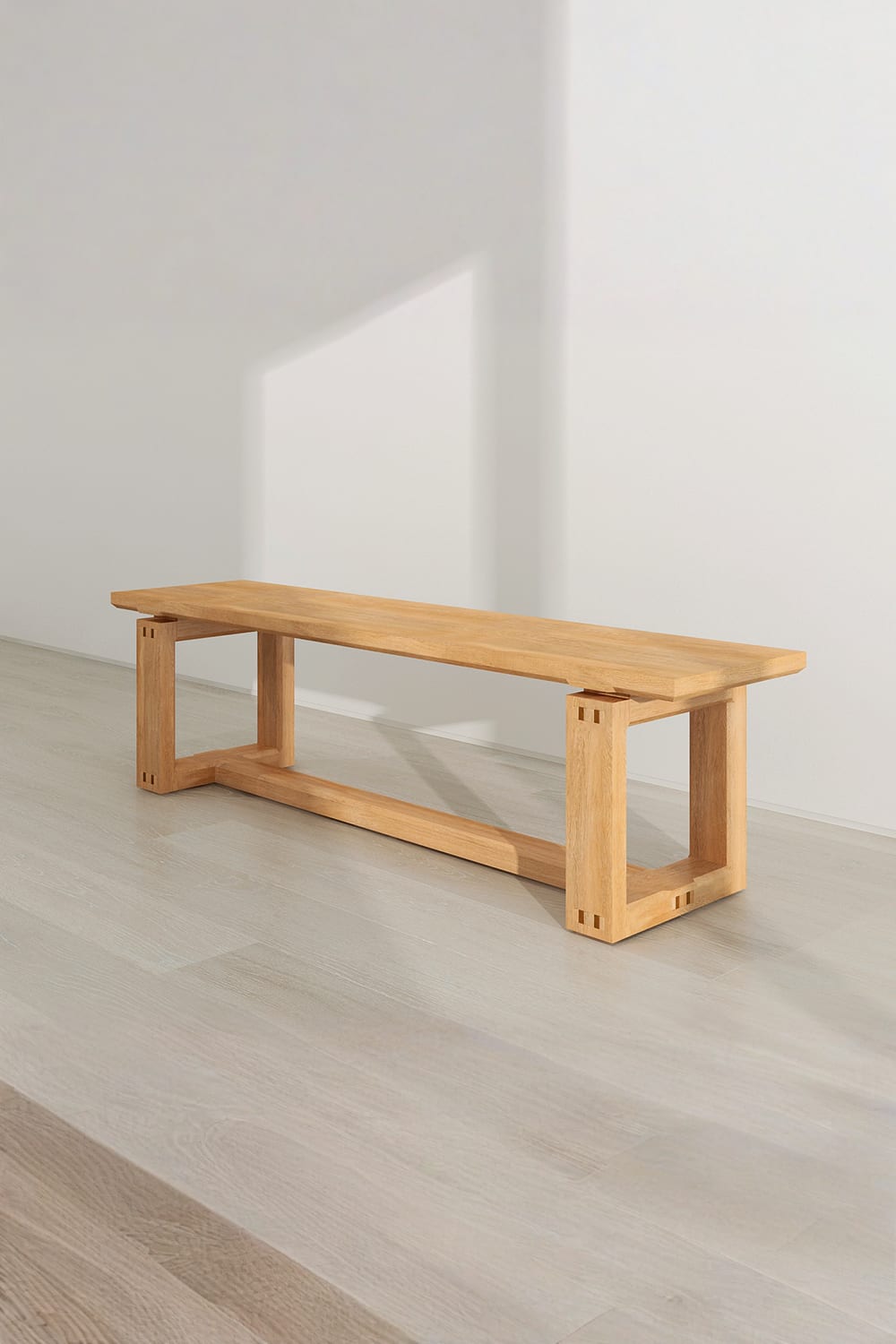Ginza Bank, Uzak Doğu tasarım felsefesinden ilham alarak sadelik, işlevsellik ve zarafeti bir araya getiriyor. Masif ahşaptan, tamamen el işçiliğiyle üretilen bu bank, kamalı geçme detaylarıyla dayanıklılığı ve ince işçiliği ön plana çıkarıyor.