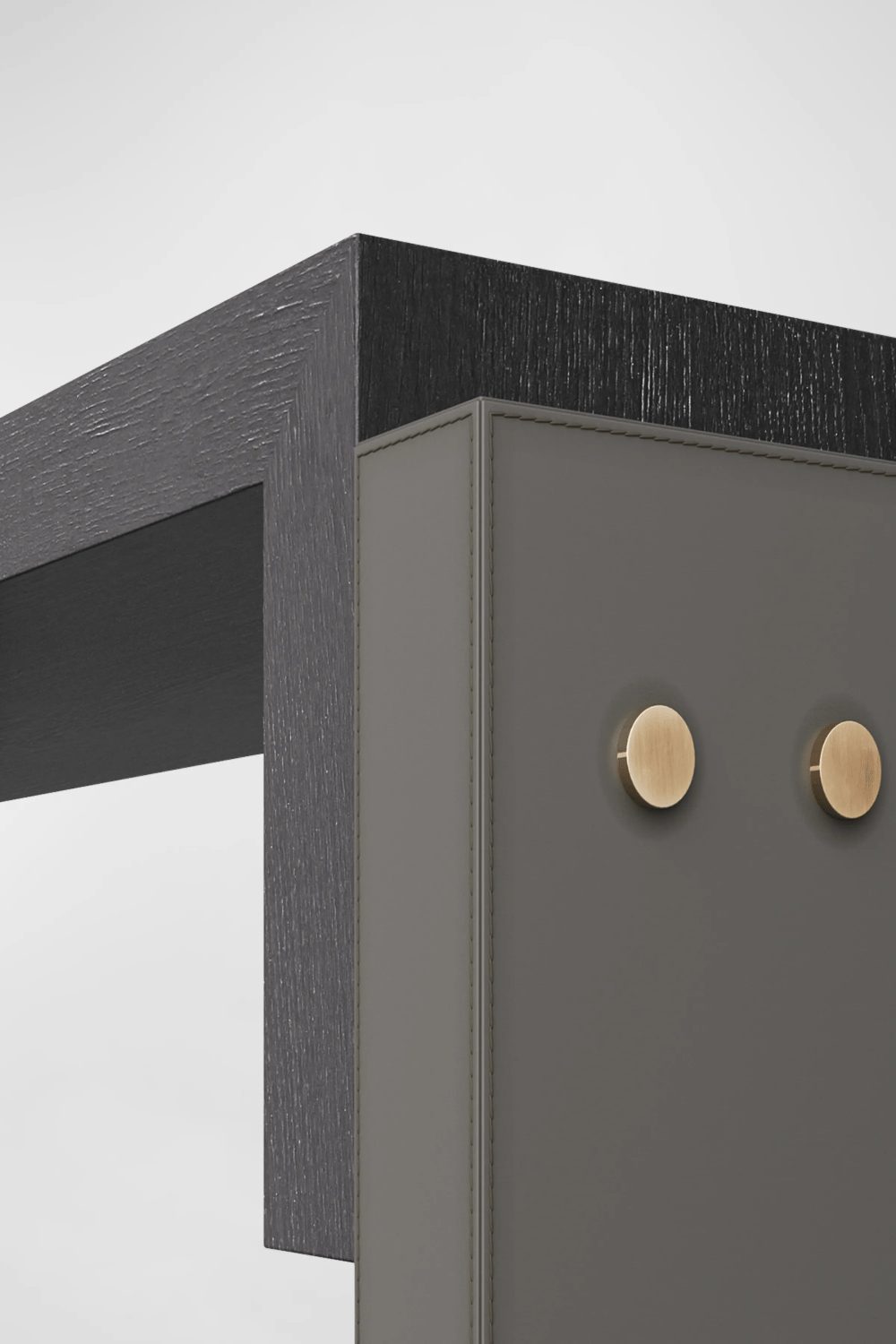 Averonne Dresuar bulunduğu her mekâna modernist bir sofistike dokunuş katar. Grafit deri kaplı zarif ayakları, abanoz meşe ağacından oluşan katmanlı tabla tasarımını destekler. Malzemelerin kusursuz uyumuyla hayat bulan bu özel parça, yan yüzeylerindeki ince dikiş detayları ve eskitilmiş pirinç düğmeleriyle estetik bir bütünlük sunar.
