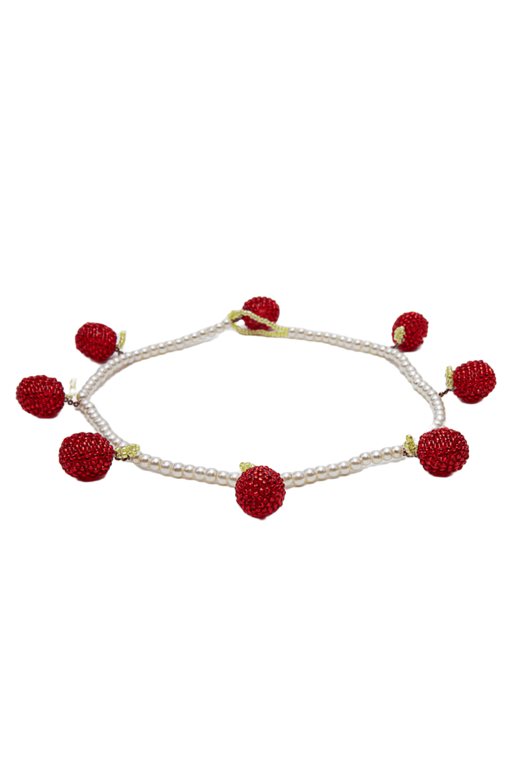 Each fruit is braided with millimetric glass sand beads using fishing line with a 7+kg breaking resistance capacity. The beads are colored by adding a coloring agent to the glass paste during the production phase. It is resistant to external factors such as sea, sun and perfume.