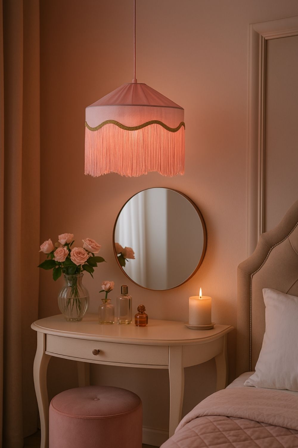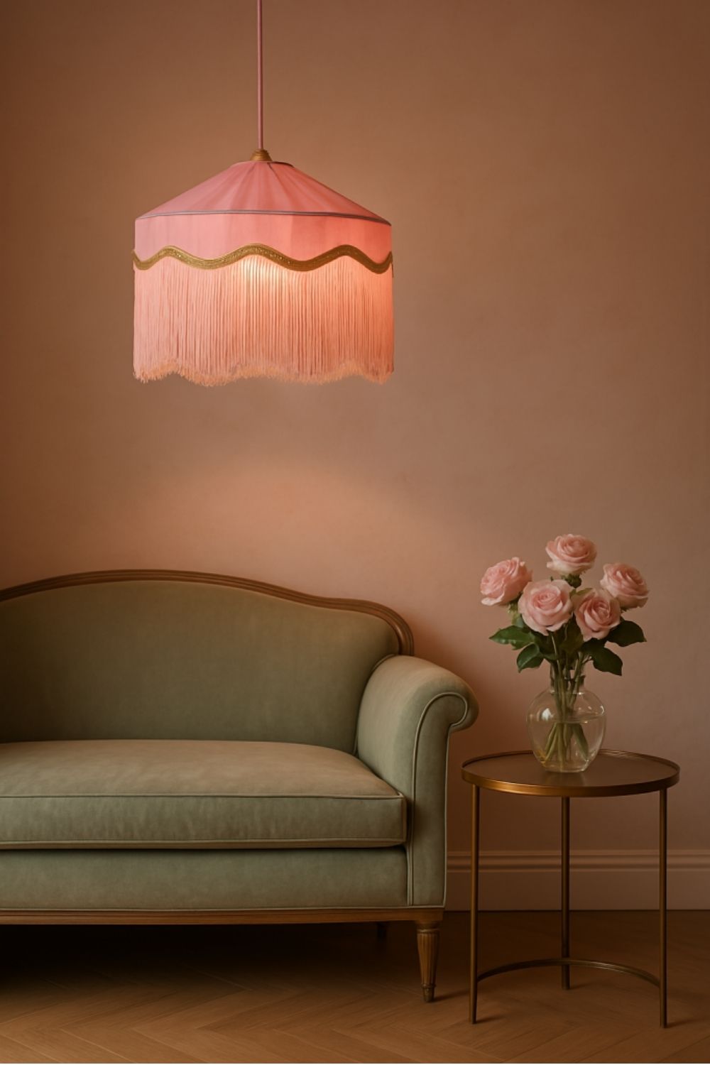Yumuşak pembe dokusu ve zarif püskülleriyle, mekanınıza romantik bir atmosfer katan özel bir tasarım.