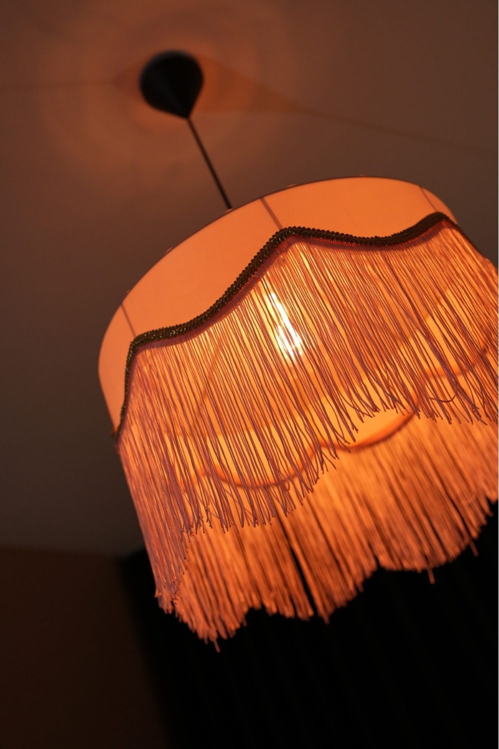 Ürün Bilgileri (Teknik Detaylar)Malzeme: Saten kumaş, metal iskeletRenk: Pudra pembe gövde, altın bordürlü pembe püsküllerÇap: 45 cmIşık: Amber tonlu LED uyumluAmpul Uyumu: E27 duy (LED ampul önerilir)Kablo Rengi: Pembe