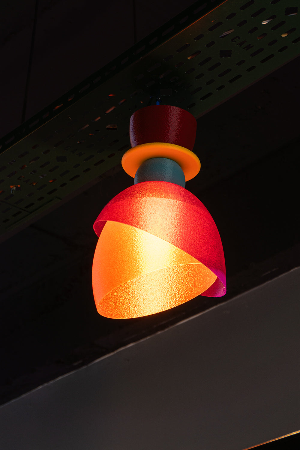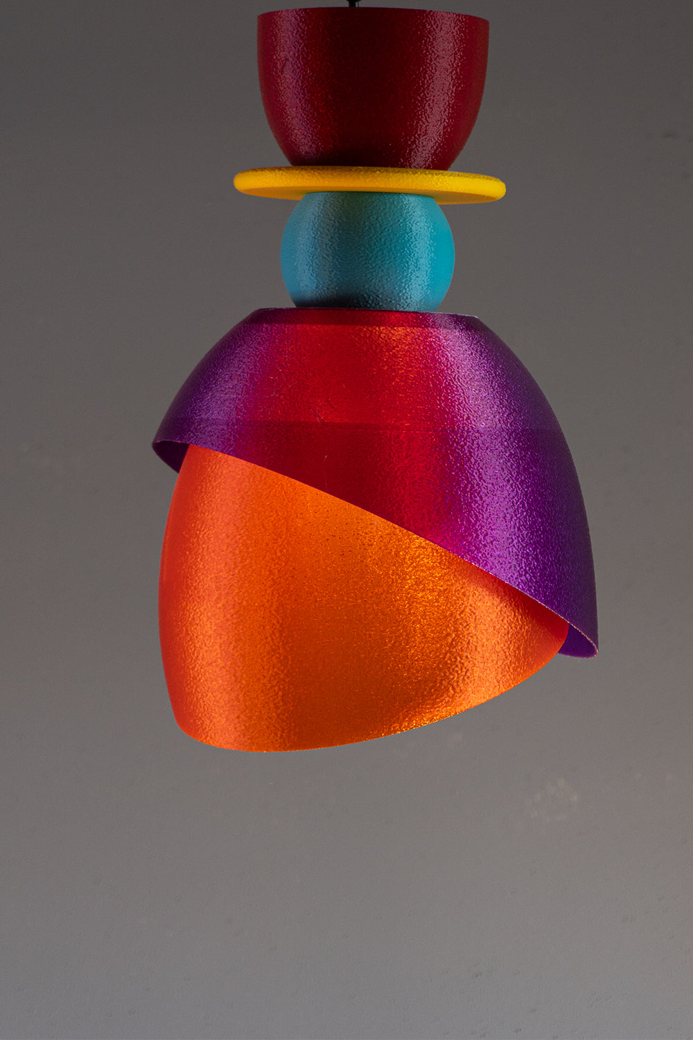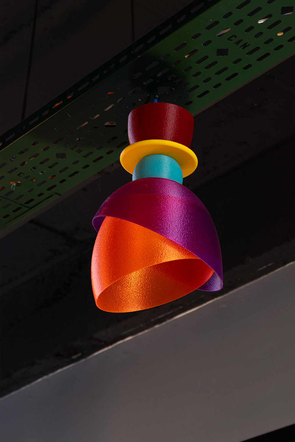 Prisma avize, geometrik şekillerin üst üste gelmesiyle oluşan renkli ve dikkat çekici formuyla mekânınıza pop-art tarzında bir enerji katar. Açılı yuvarlak hatları ışığı yumuşak bir şekilde yayarken, parlak renk detayları bulunduğu ortama canlılık ve dinamizm kazandırır.