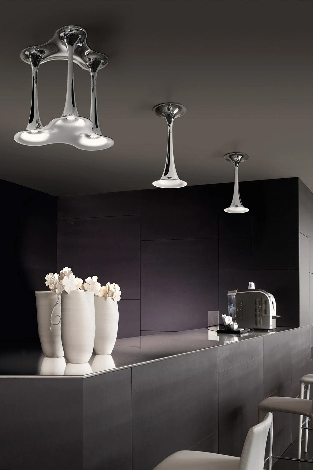 Enjeksiyonla kalıplanmış Akrilonitril Bütadiyen Stiren (ABS) malzemeden üretilen sarkıt lambalardan oluşan koleksiyon. GU10 duy ile LED ışık kaynağına sahiptir.