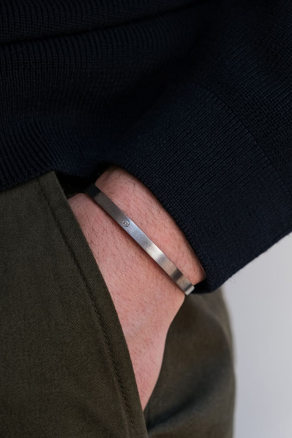 Bu eşsiz bileklik, saf gümüşün sade ama çarpıcı görünümünü pırlantanın parlaklığıyla birleştiriyor!