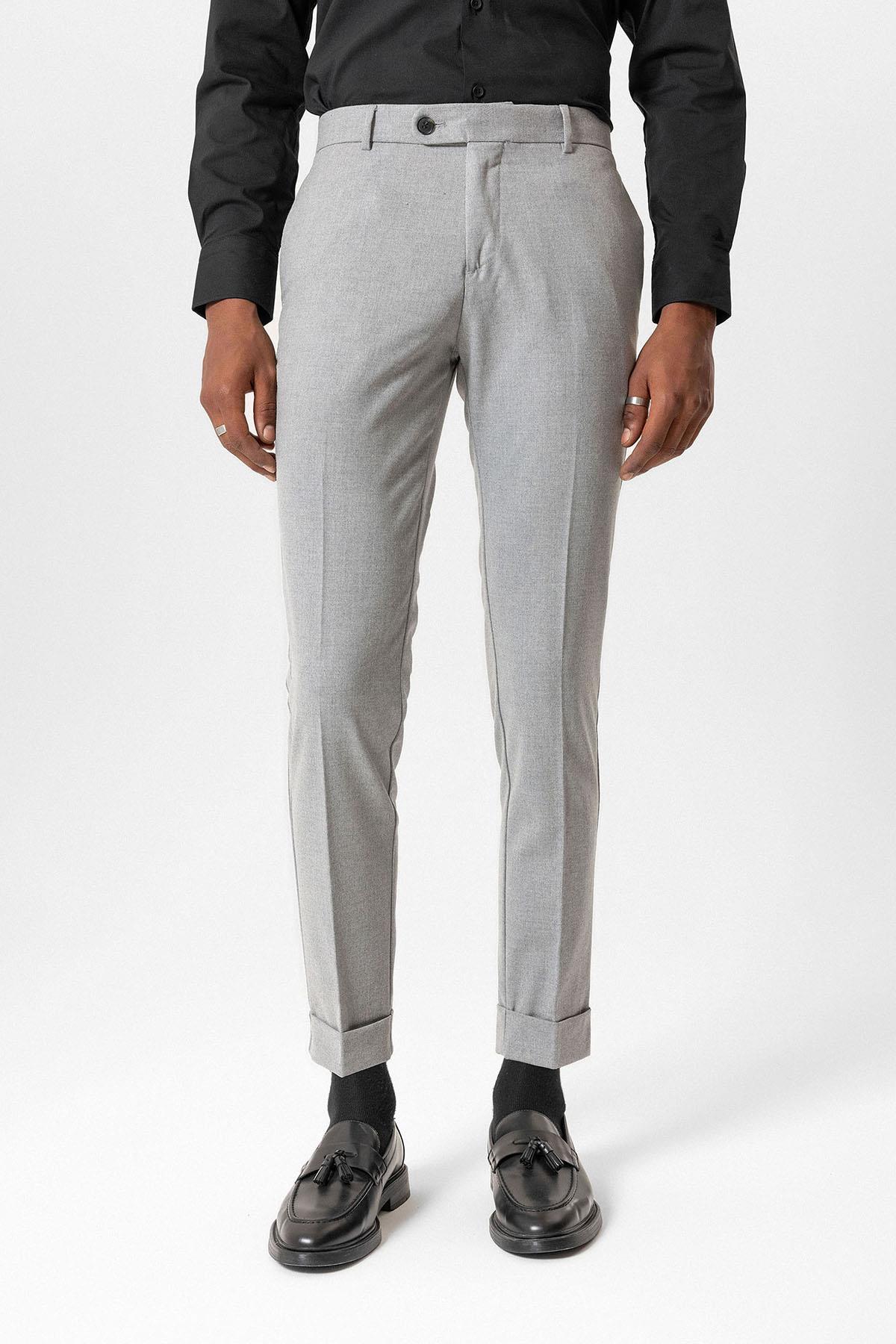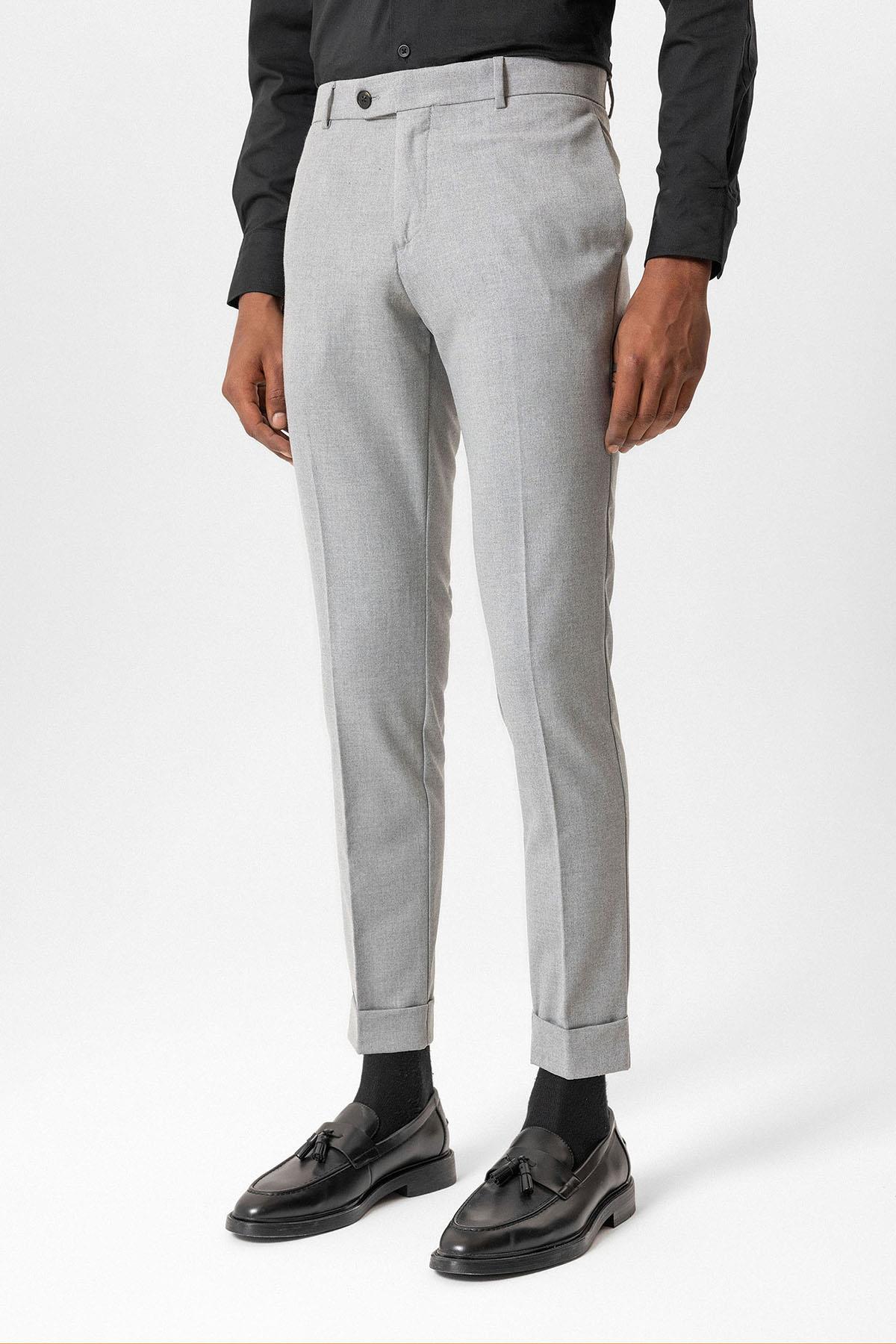 Açık Gri Regular Fit Duble Paça Erkek Pantolon