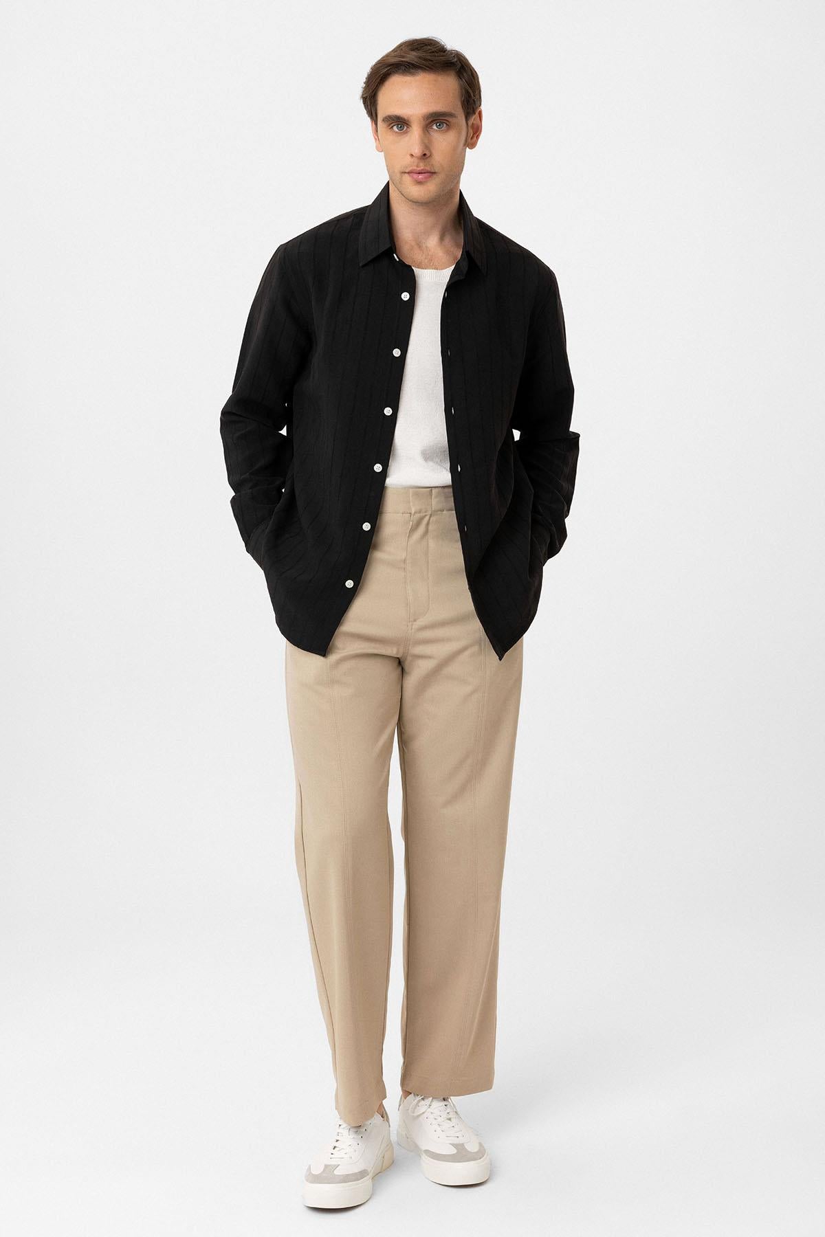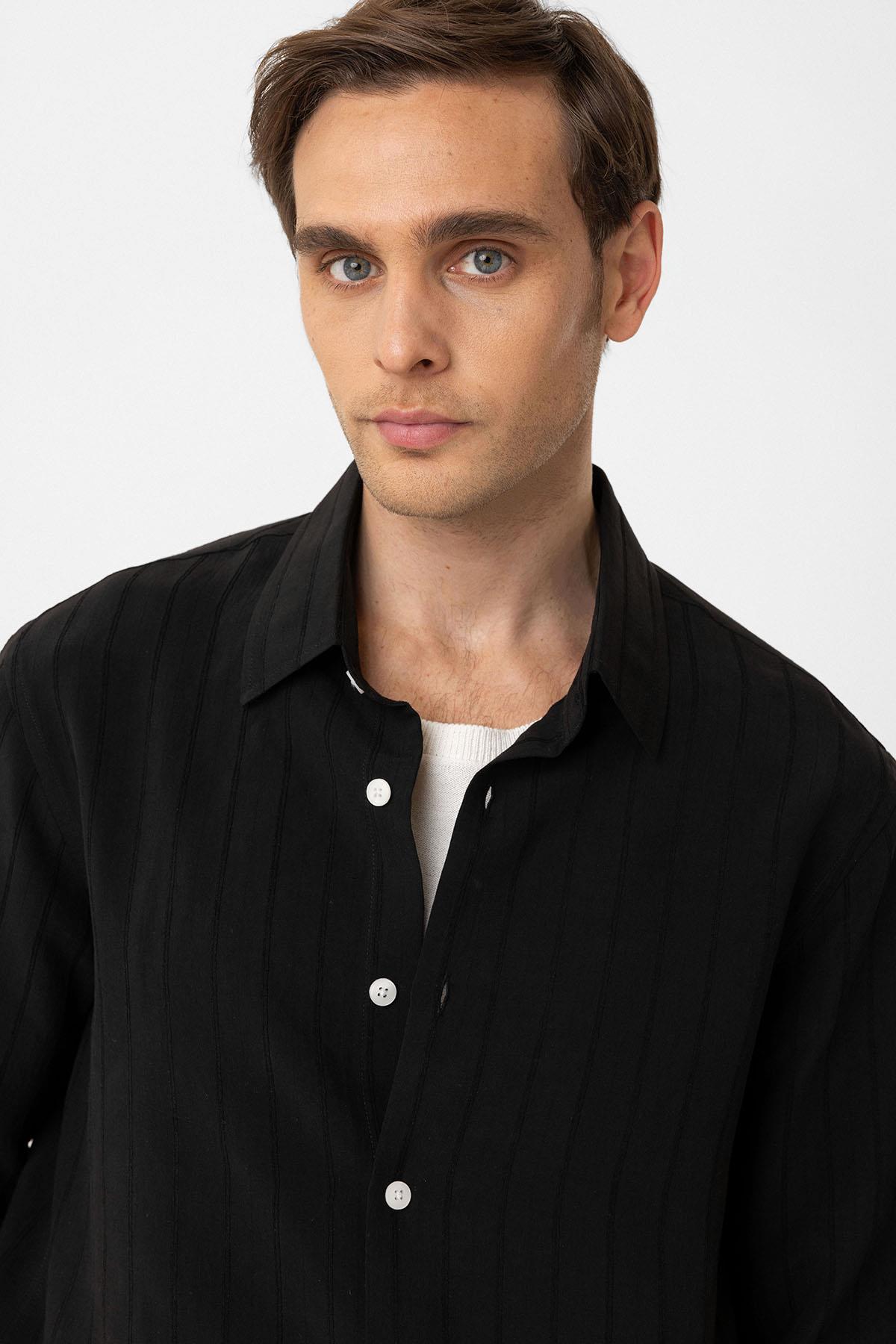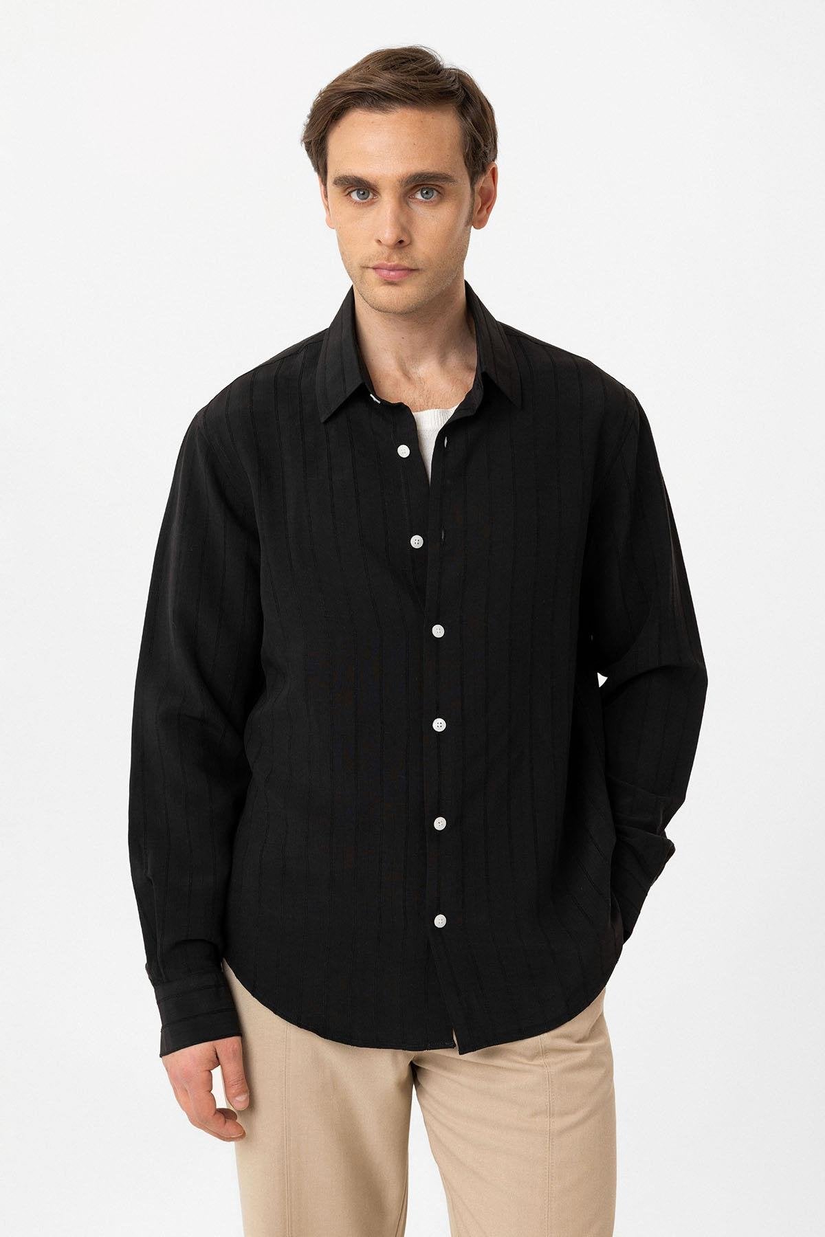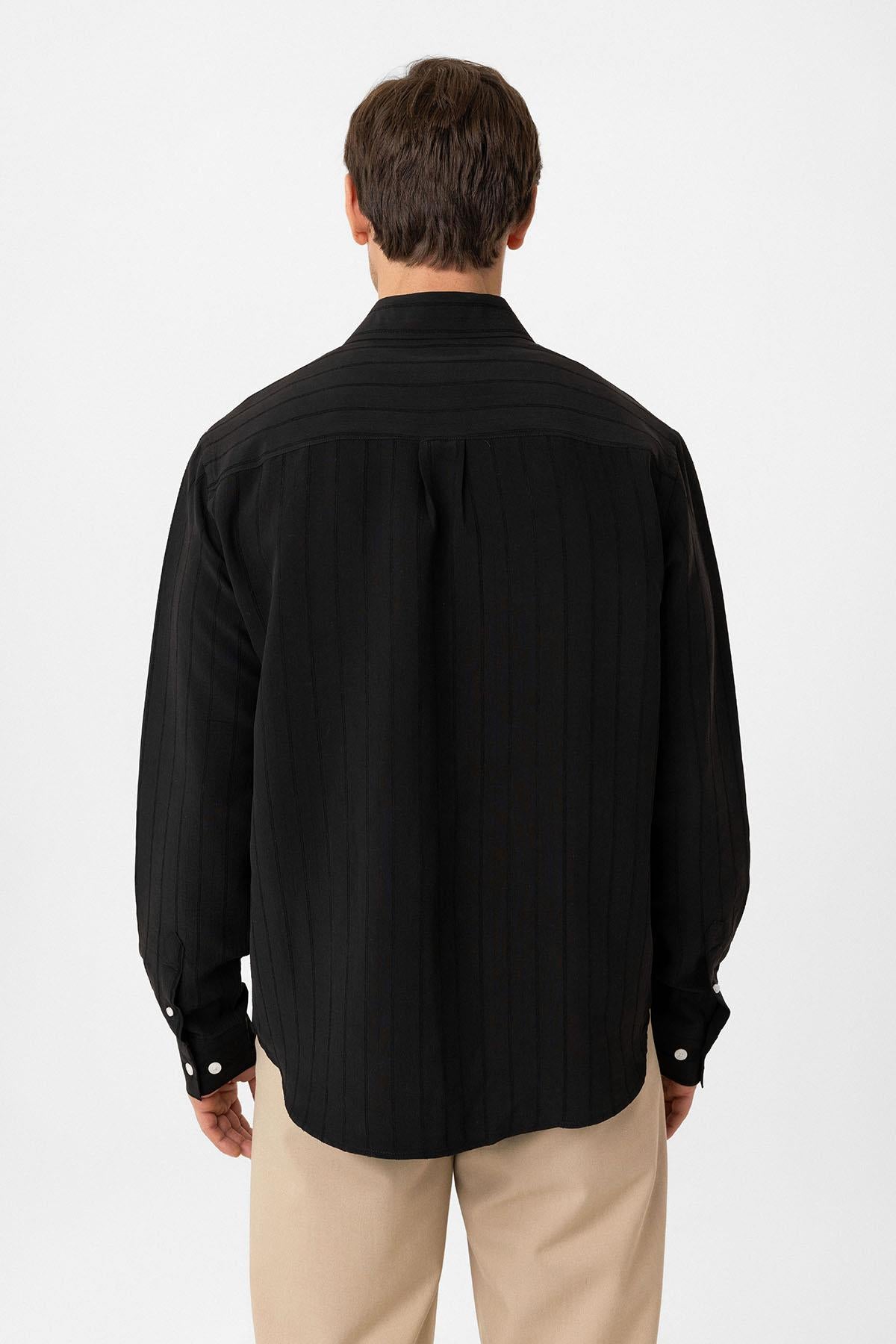 Siyah Relax Fit Çizgili Erkek Gömlek