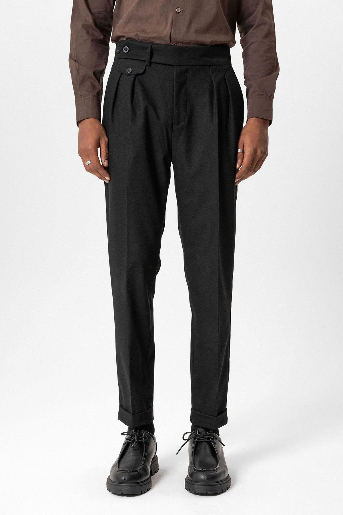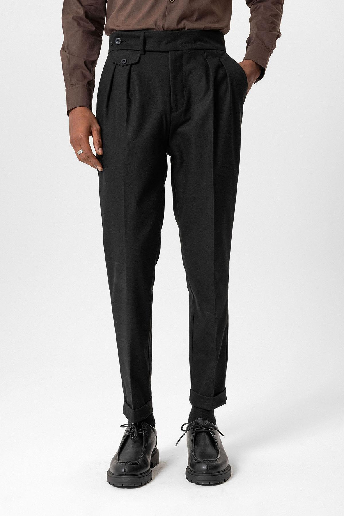 Siyah Yüksek Bel Pileli Teknik Erkek Pantolon