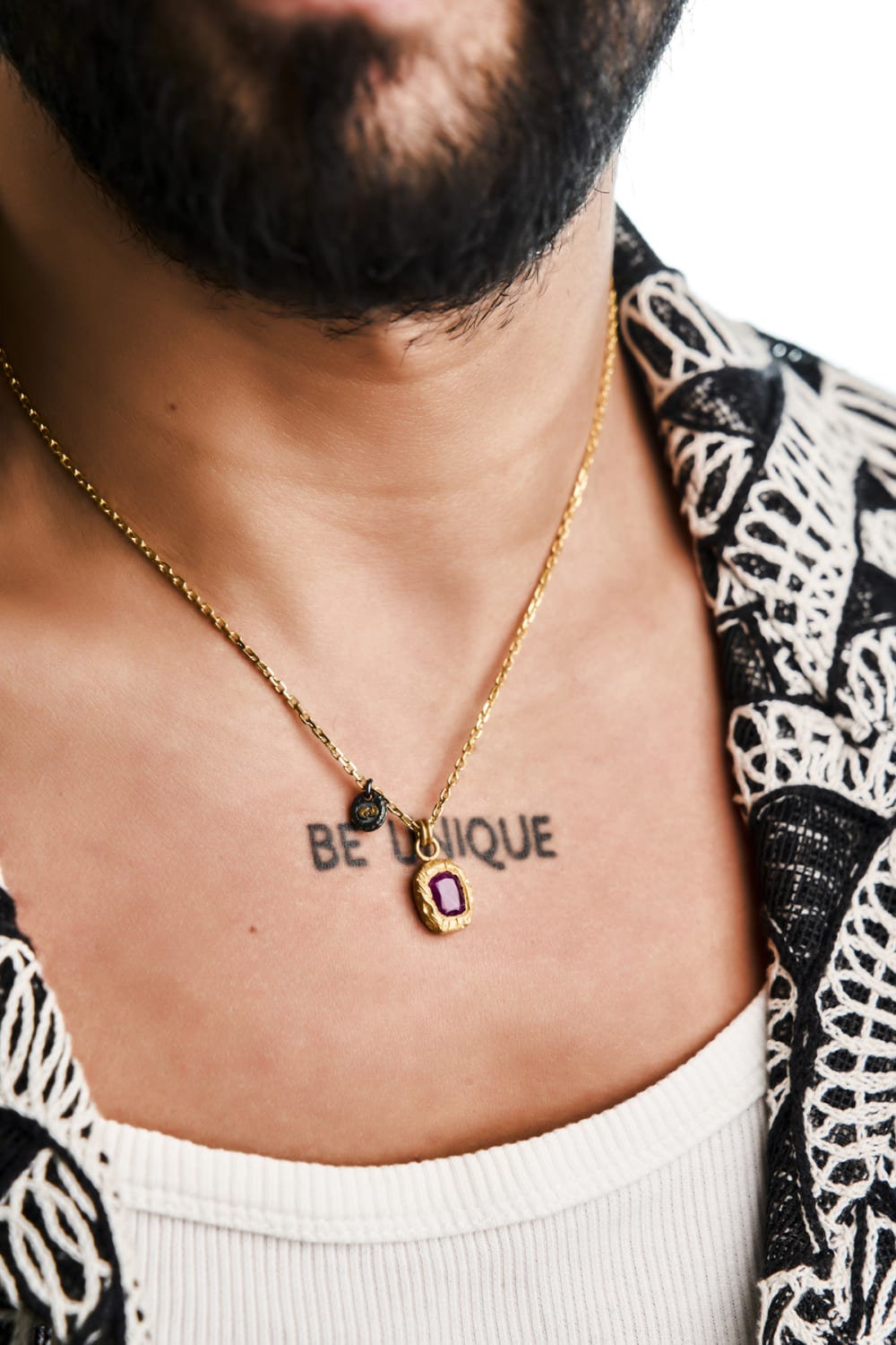 925 Ayar gümüş üzeri 18 k altın kaplama ve Ruby taşı kullanılmıştır.