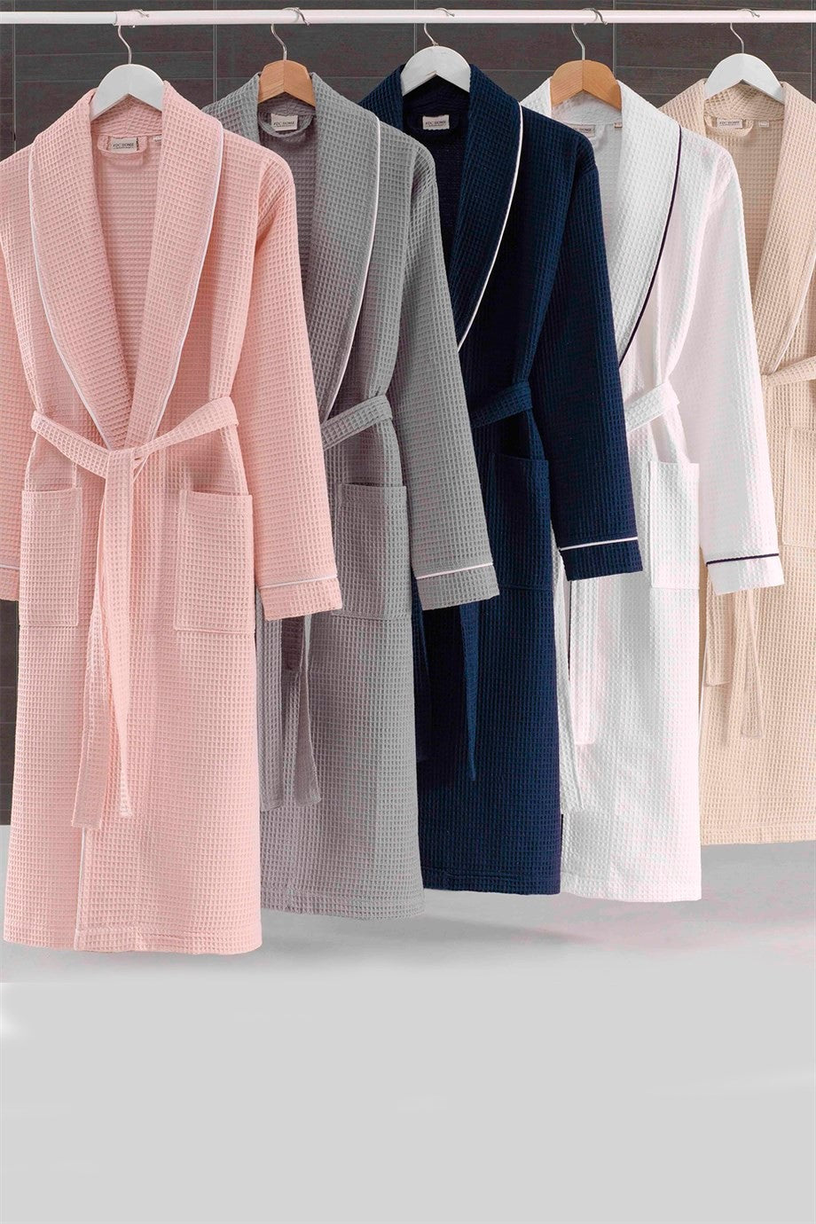 En kaliteli pamuk ipliğinden üretilmiş olan bornoz yüksek nem emici özelliğine sahiptir. Az yer kaplayan bornozlarımızı evde, banyoda, havuzda, spada ve plajda zevkle kullanabilirsiniz. Dokusu yumuşacıktır ve kullanım anında kesinlike cildinizi tahriş etmez.