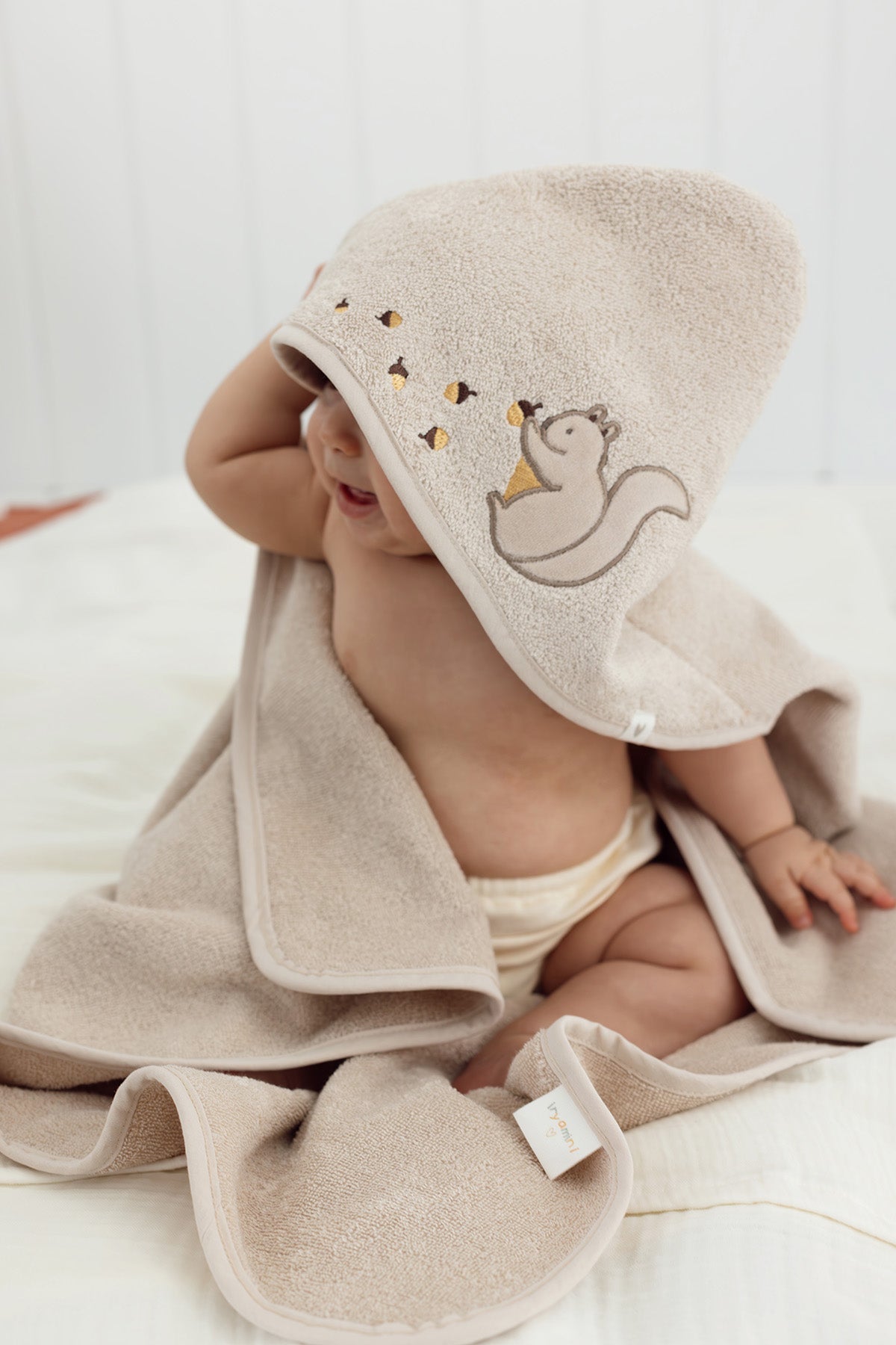 Tiny Squirrel Organik Pamuk Nakışlı Bebek Kundak Bej 75x75