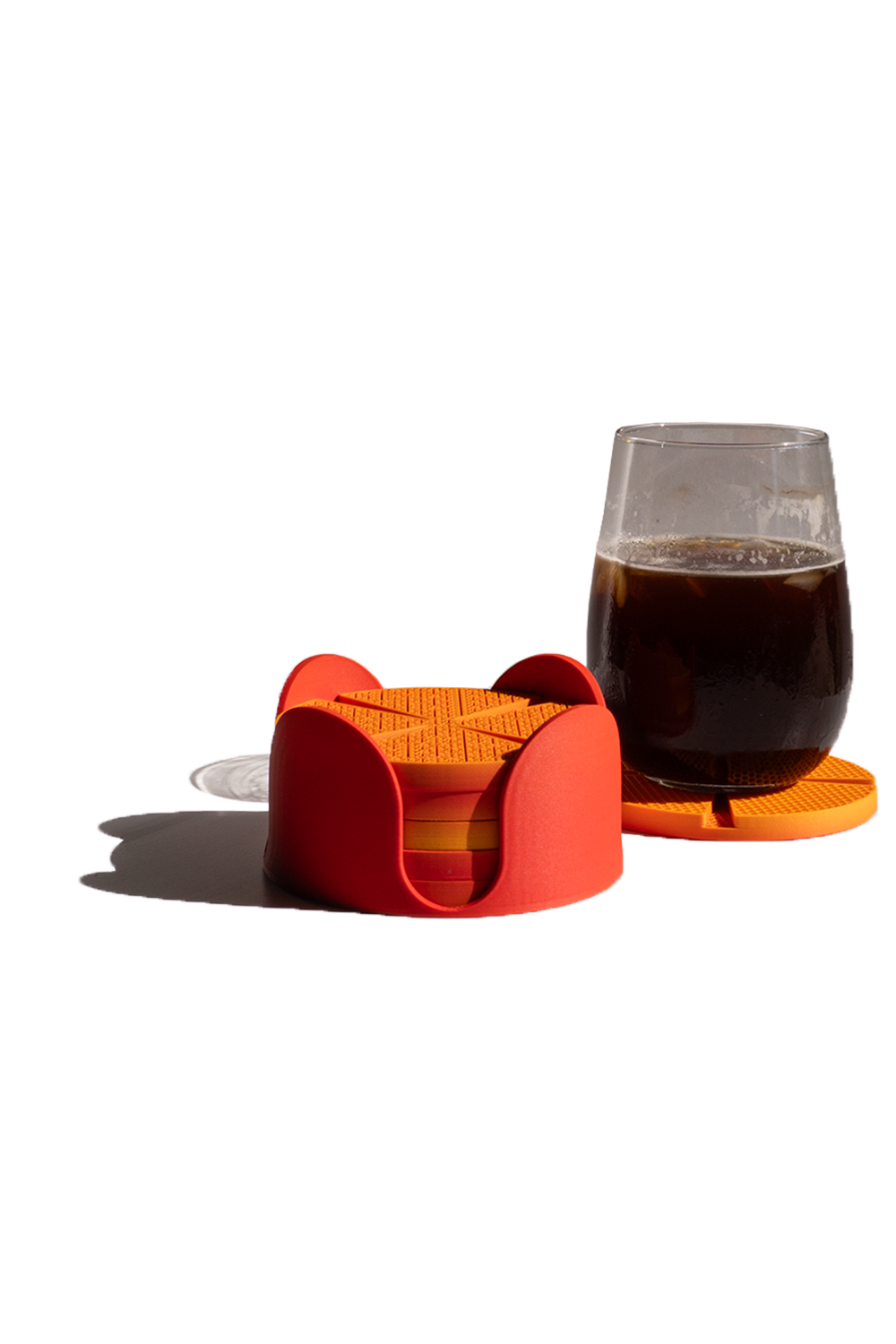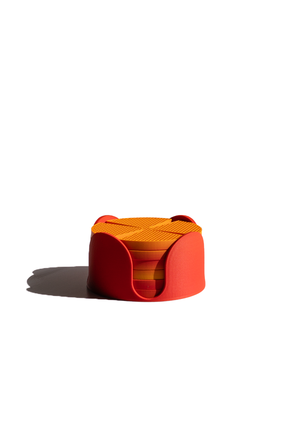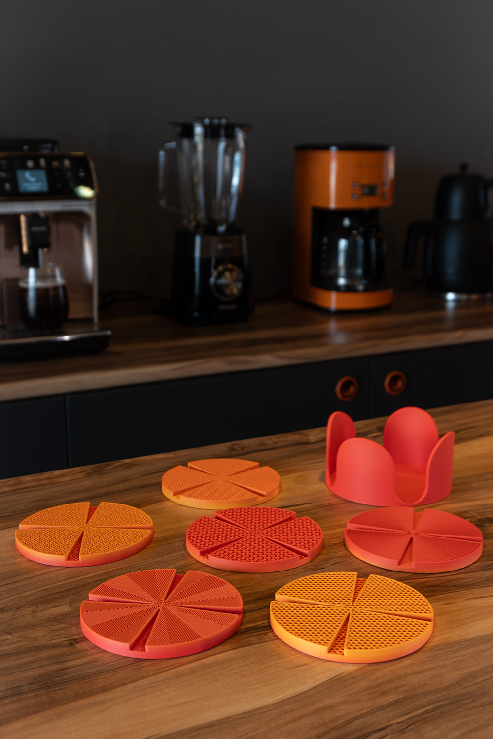 Modern tasarımıyla sofralara renk katar, masa düzenini korur. Altlıkların özel yüzey dokusu bardakların kaymasını önler. Kullanılmadığında hepsi kap içine yerleştirilerek düzenli bir şekilde saklanabilir.