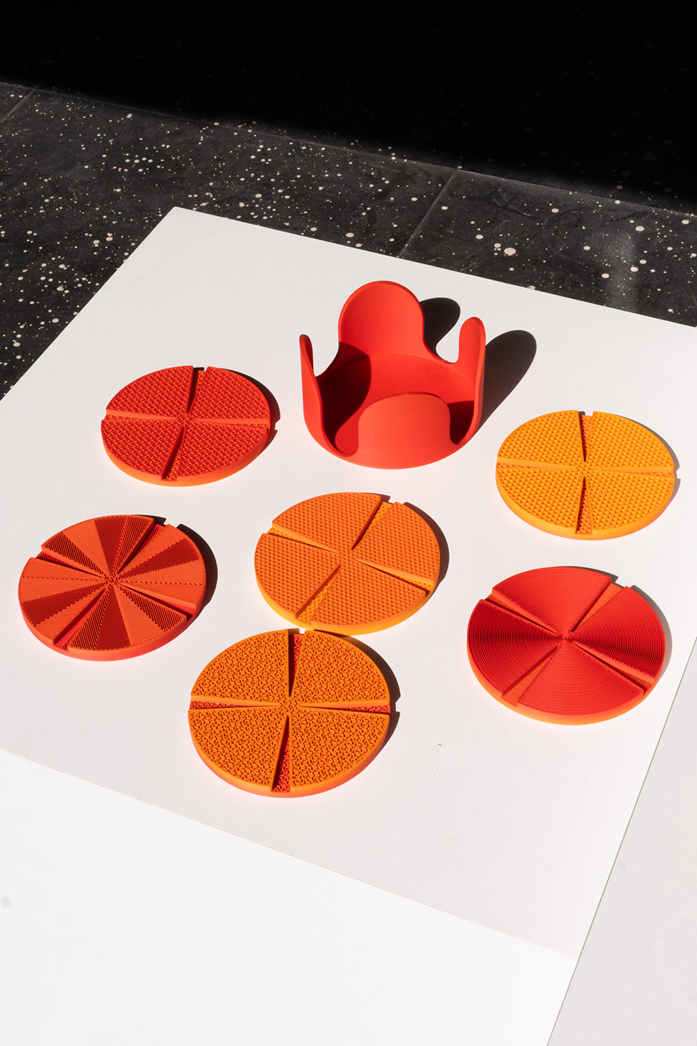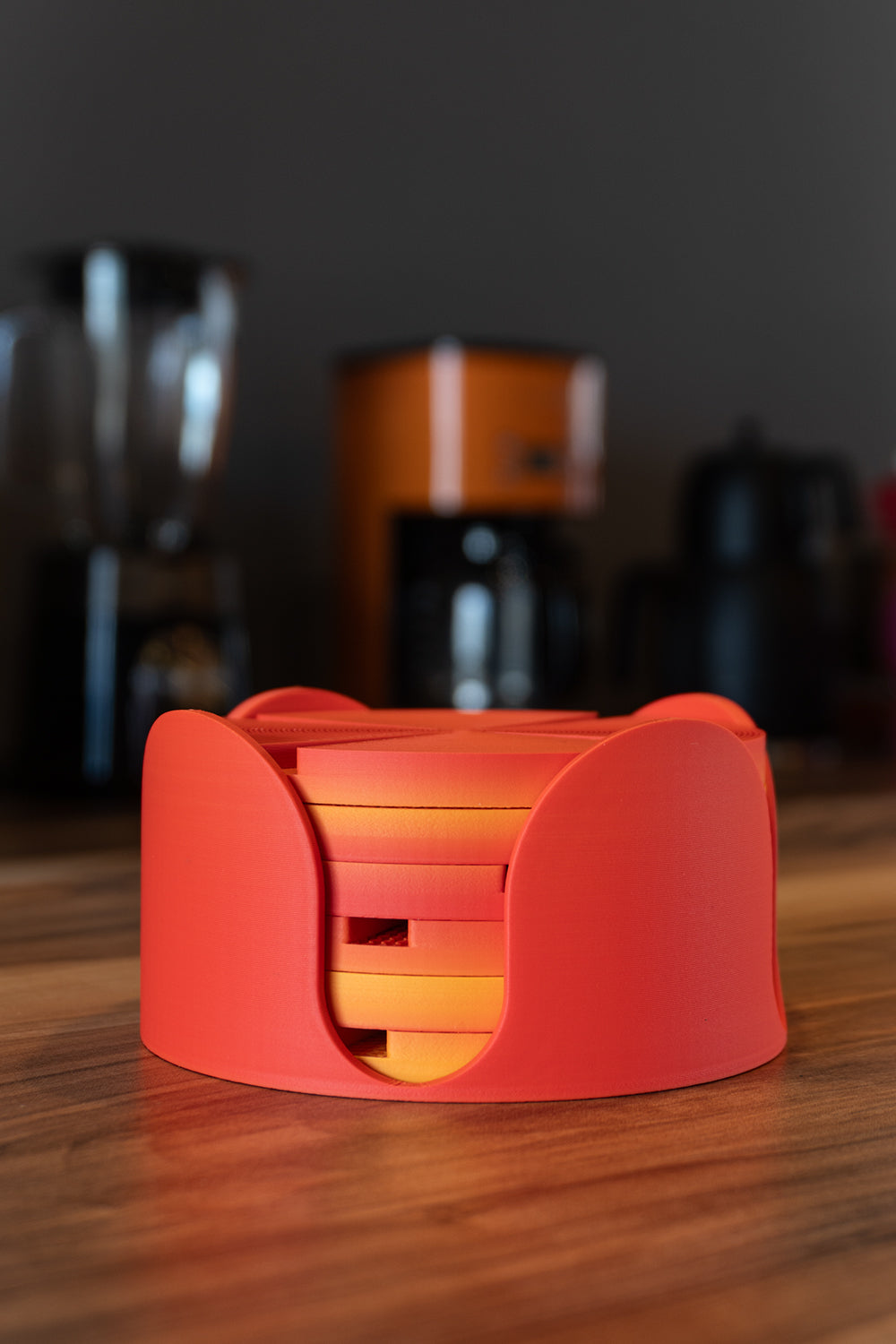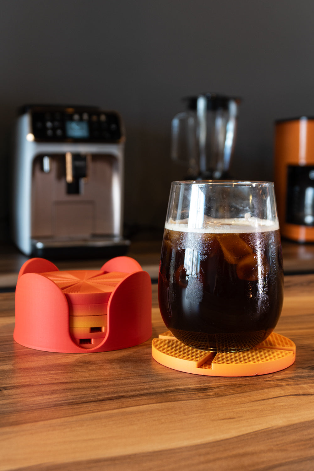 Modern tasarımıyla sofralara renk katar, masa düzenini korur. Altlıkların özel yüzey dokusu bardakların kaymasını önler. Kullanılmadığında hepsi kap içine yerleştirilerek düzenli bir şekilde saklanabilir.