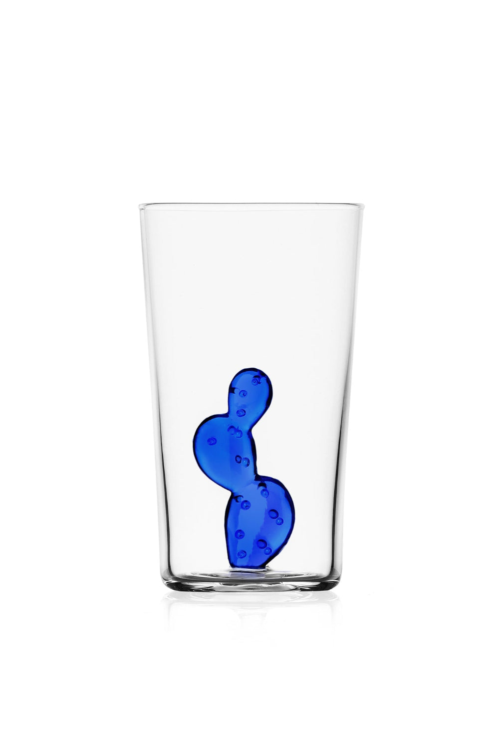 Desert Plants Mavi Kaktüs Figürlü Cam Meşrubat Bardağı