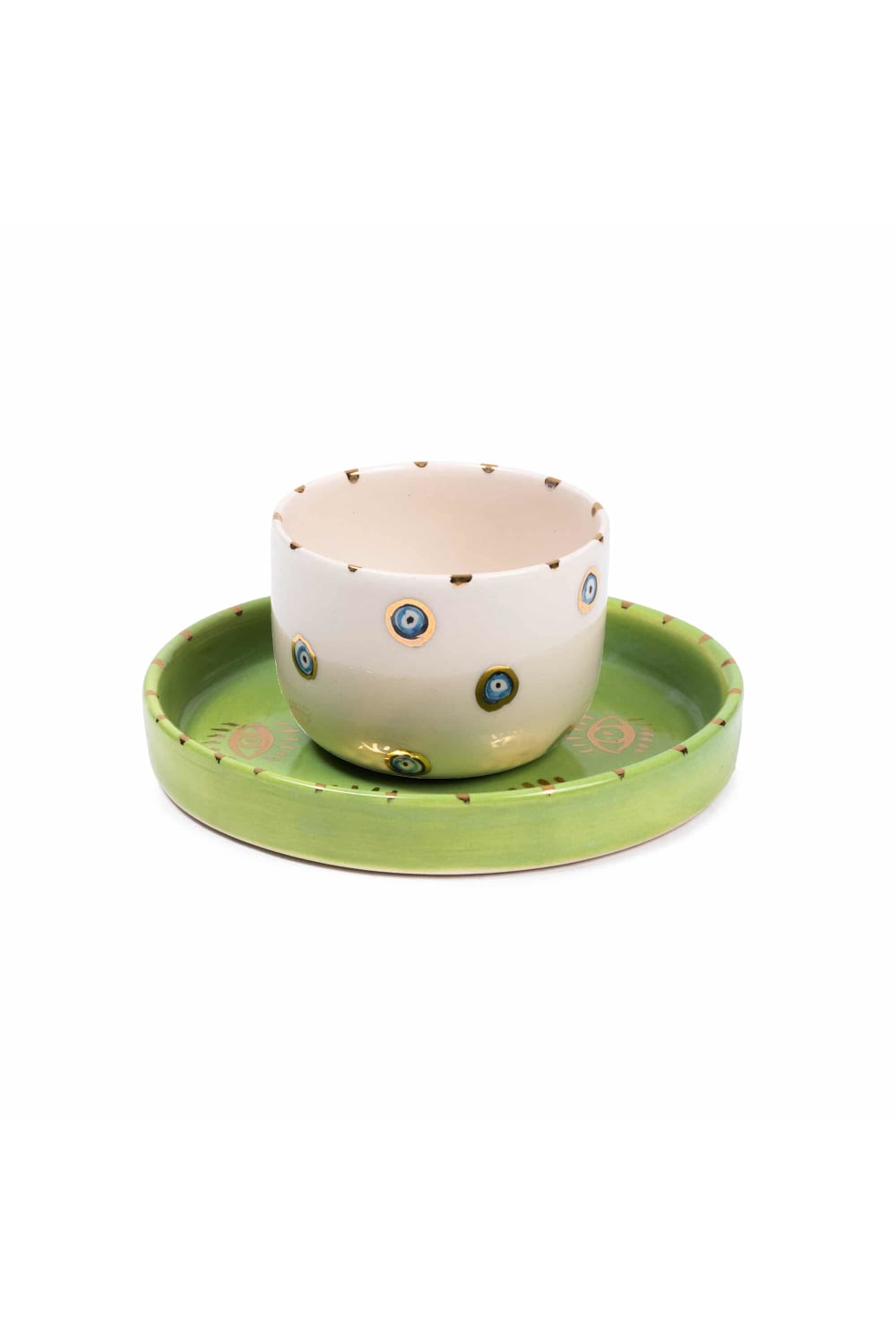 Inner Eye Collection Gözlü Açık Yeşil Türk Kahvesi Fincanı Seti