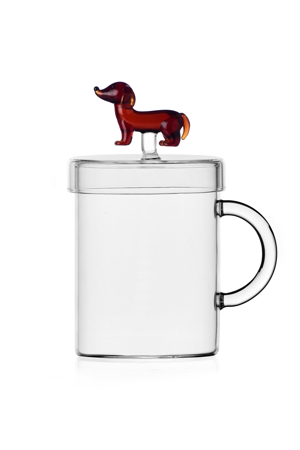 Sevimli tasarımıyla dikkat çeken bu cam kupa, Dogs koleksiyonunun en özel parçalarından biridir. Kapak kısmında el yapımı camdan sosis köpek (Bassotto) figürüyle süslenmiş olan bu kupa, hem işlevsel hem de dekoratif bir üründür. Borosilikat camdan üretilmiş olup sıcak ve soğuk içecekler için uygundur. Kapağı sayesinde içeceğinizin ısısını korur, figürlü tasarımı ise masanıza neşeli ve karakter dolu bir dokunuş katar. Kahve ve çay saatlerine sevimli bir stil katmak isteyenler için ideal bir seçimdir.