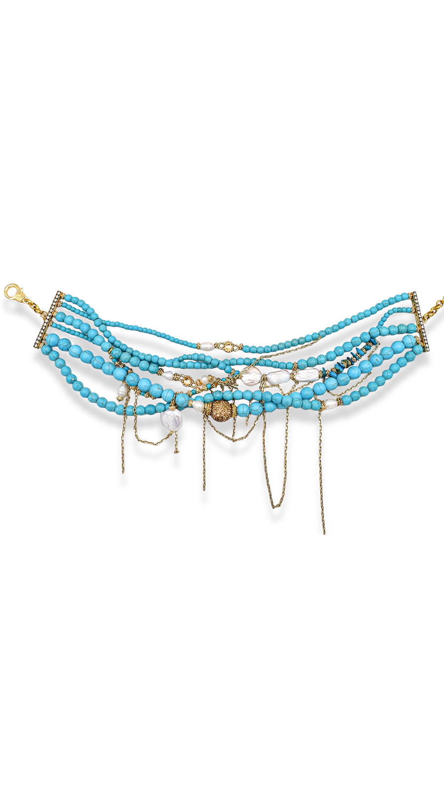Materyal22 ayar altın kaplama pirinç, barok inci, markazit taş, turkuaz taş, kristal taş