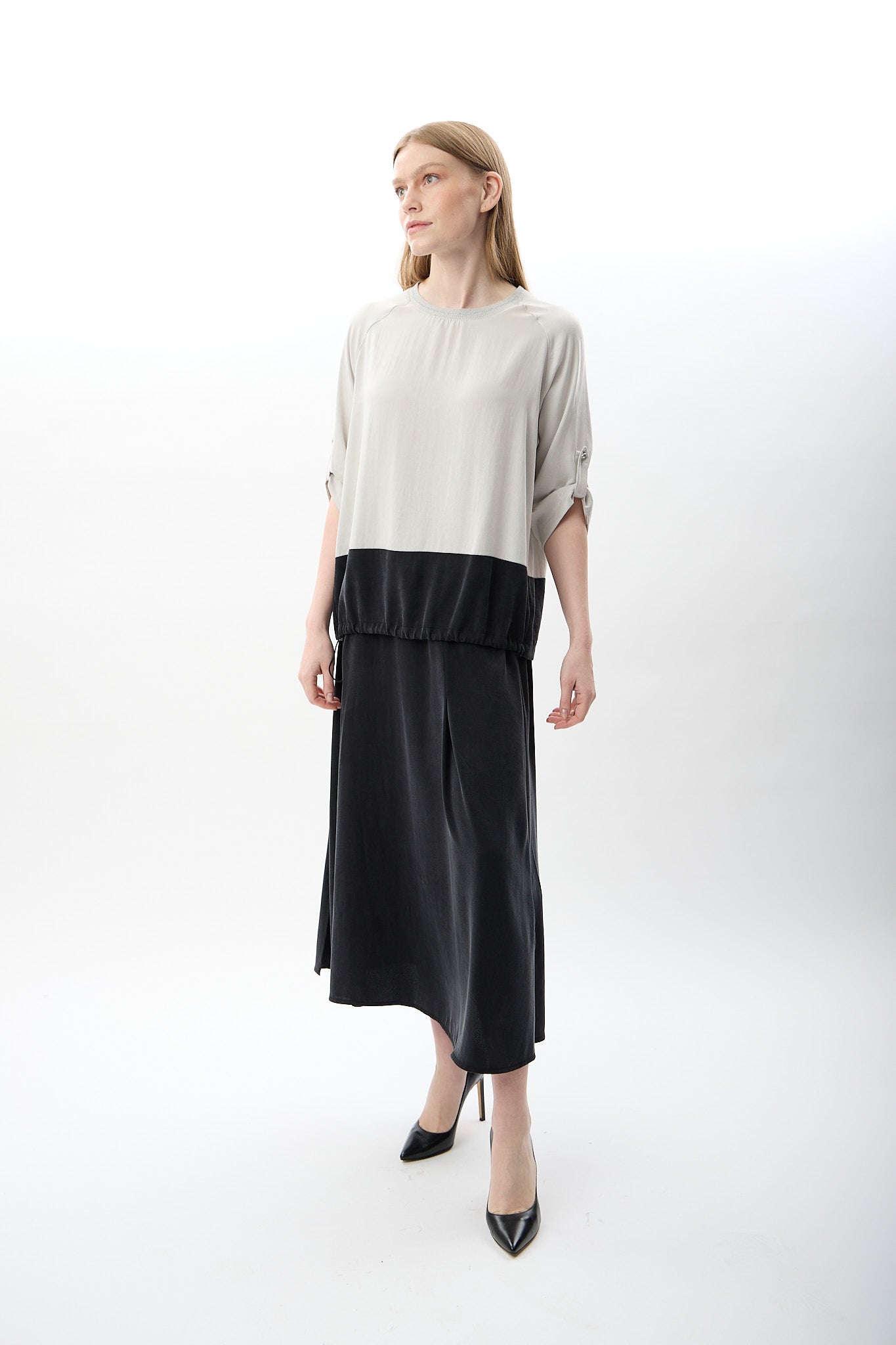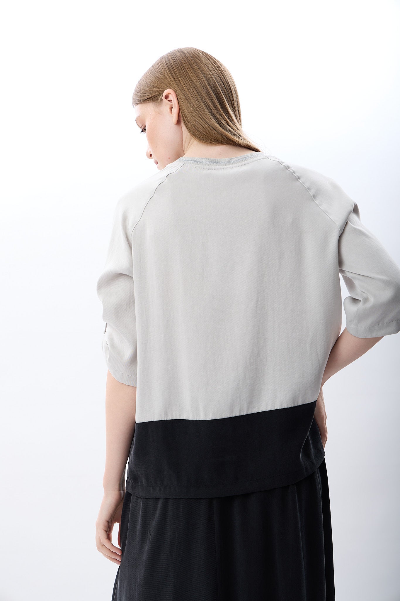 Büzgü Ayarlı İki Renkli Sweatshirt (Gri Siyah)
