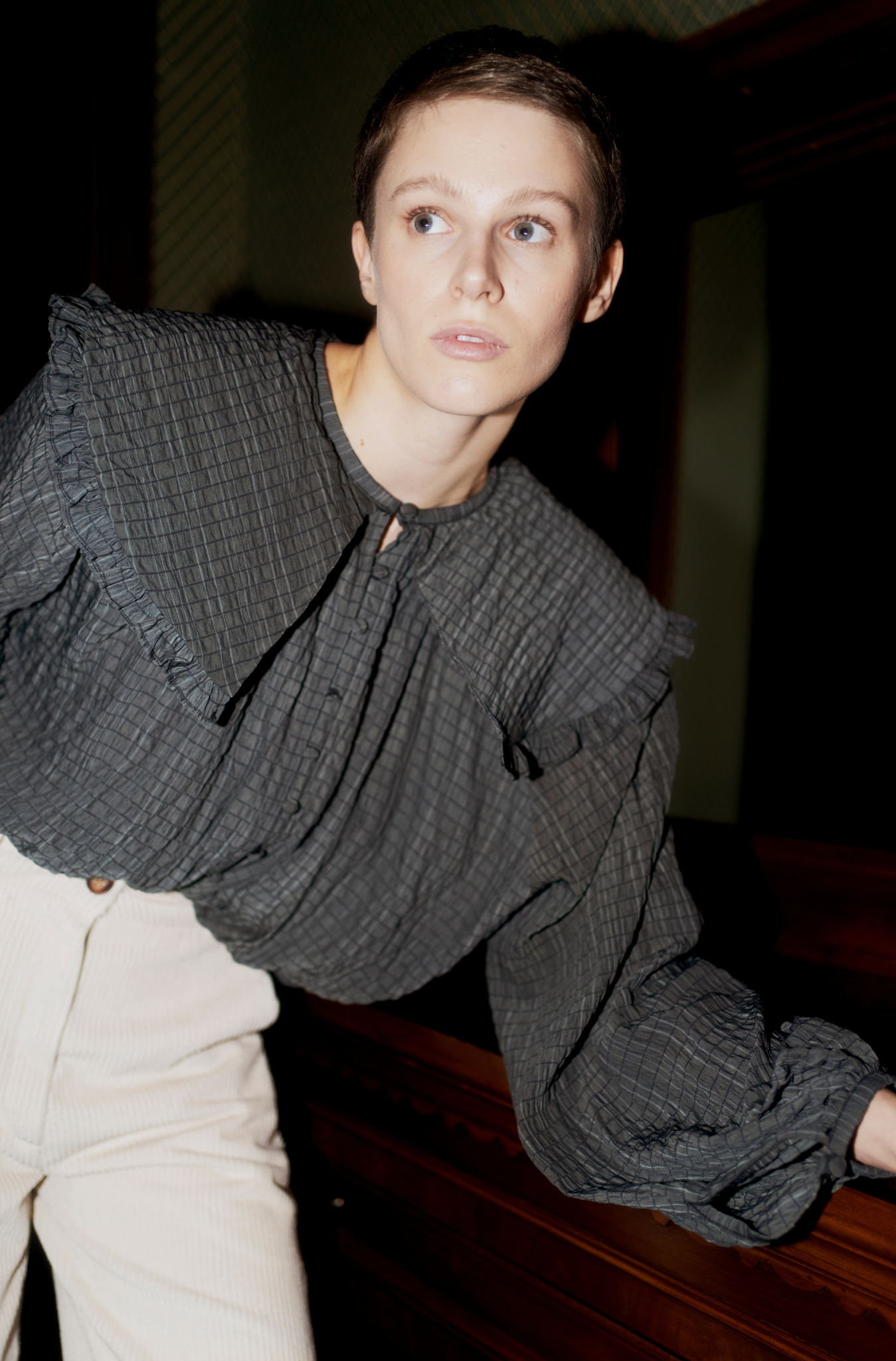 Klasik bluzun modern bir yorumu olan bu tasarım, oversize yaka ve ön detaylarıyla hem şıklığı hem de rahatlığı bir araya getiriyor. Çok yönlü yapısı sayesinde günlük hayatta ya da özel davetlerde kolayca kombinlenebilir, gardırobunuza zamansız bir dokunuş katar.
