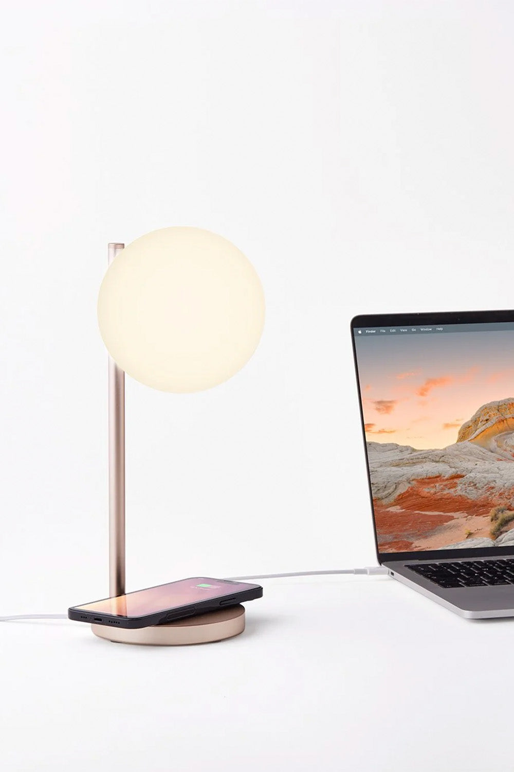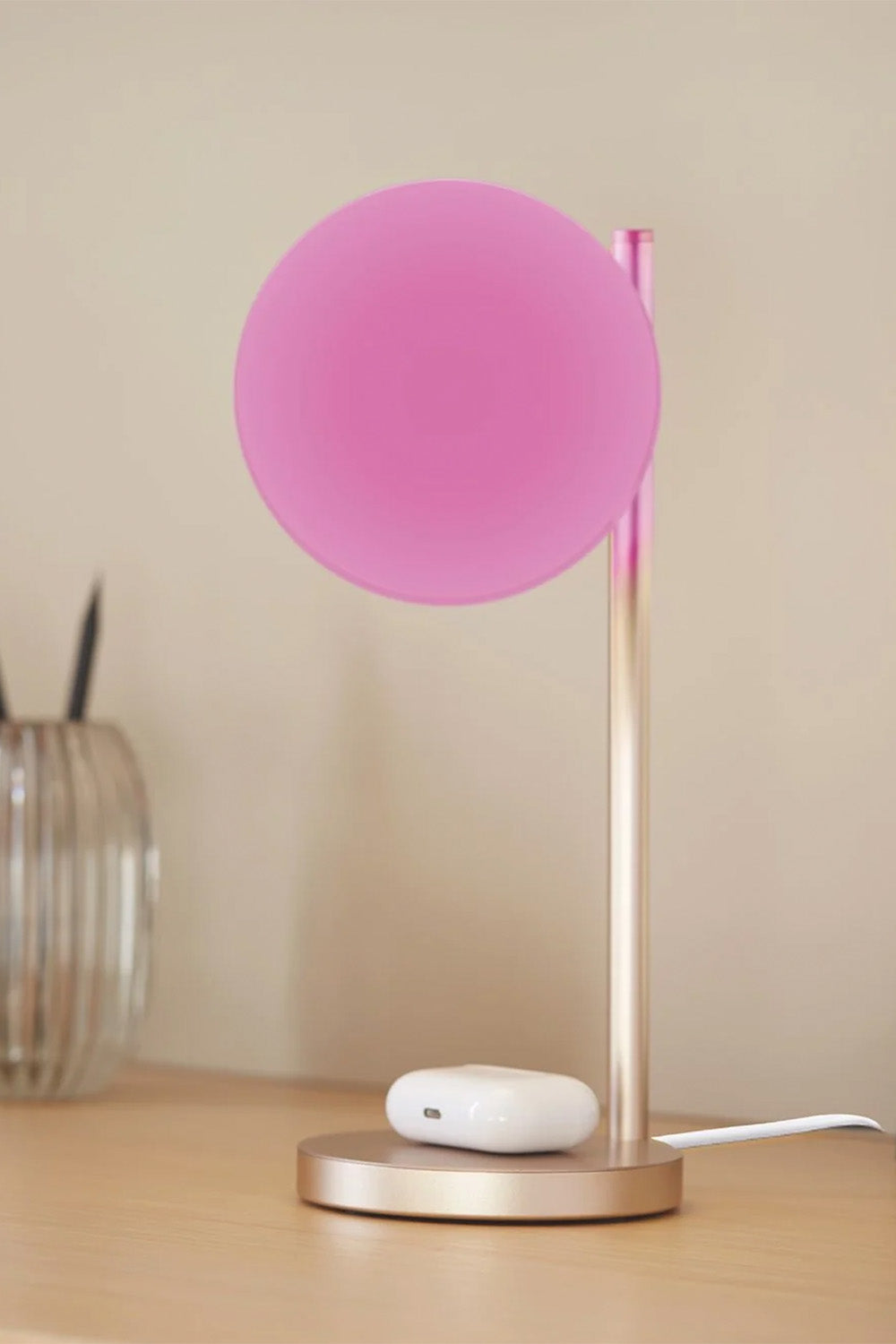 Hem şık bir LED lamba hem de kablosuz şarj cihazı görevi gören Bubble Lamp, masanızı, komidininizi veya sehpanızı tamamlayacak mükemmel bir eşyadır. Kullanımı kolaydır; ışığı açmak/kapatmak, LED renklerini değiştirmek ve parlaklığı ayarlamak için tek bir dokunuş yeterlidir.