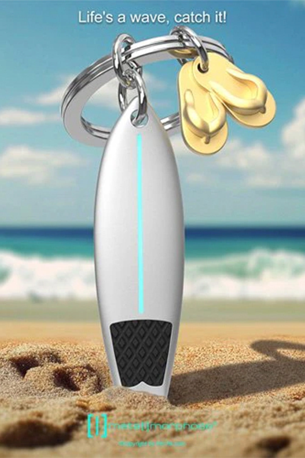 Hayat bir dalga, yakala! Metalmorphose – kaliteli anahtarlıklar üretme konusunda uzmanlaşmış bir Belçika markası. Tüm anahtarlıklar paslanmaz çelik halka ve üst düzey kaplama tekniği ile üretilmiştir. Tüm anahtarlıklar, özel kutusunda gelir. Kutunun yan tarafındaki küçük bir alıntı da anahtarlığın tasarımına duygusal bir göz kırpıyor.