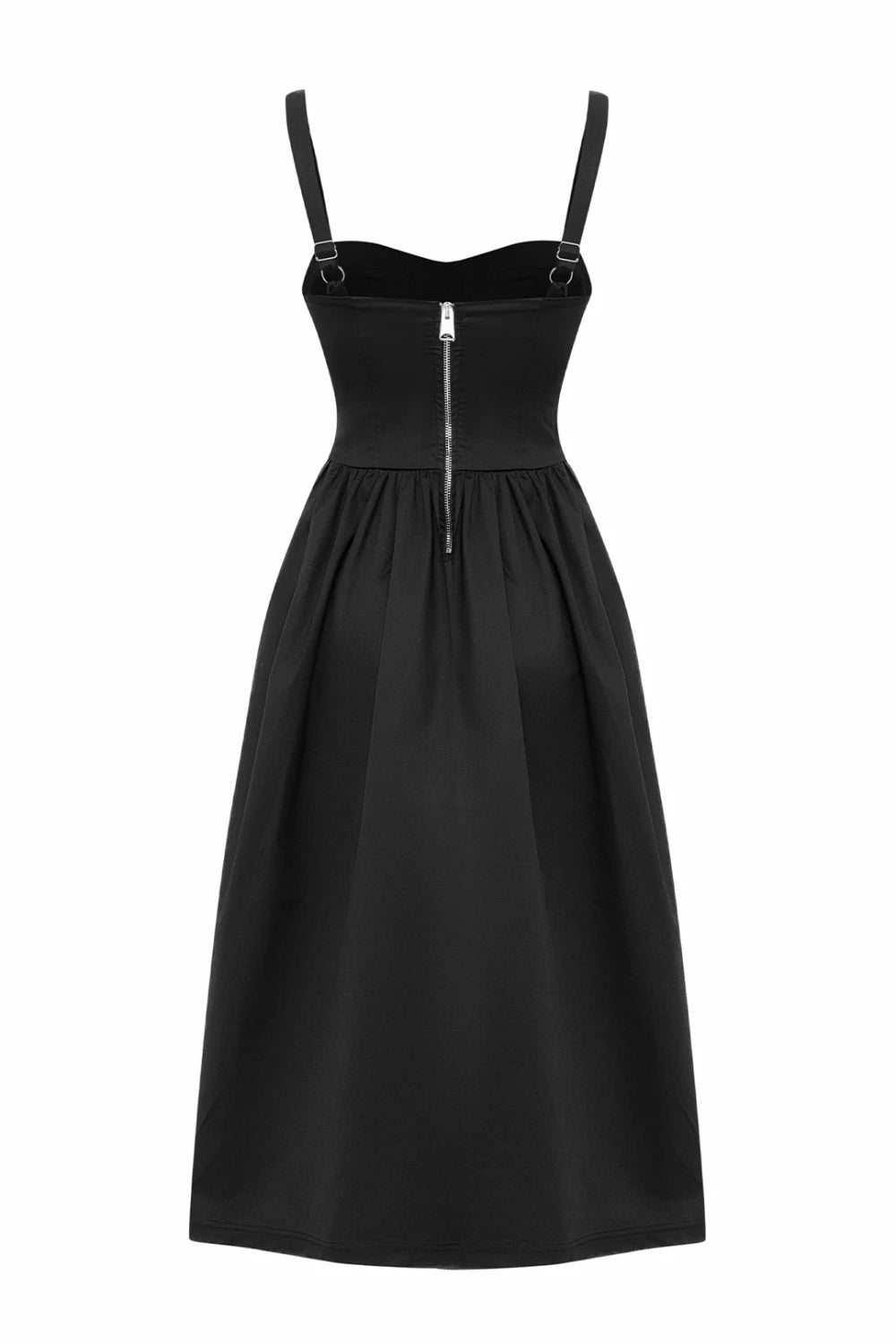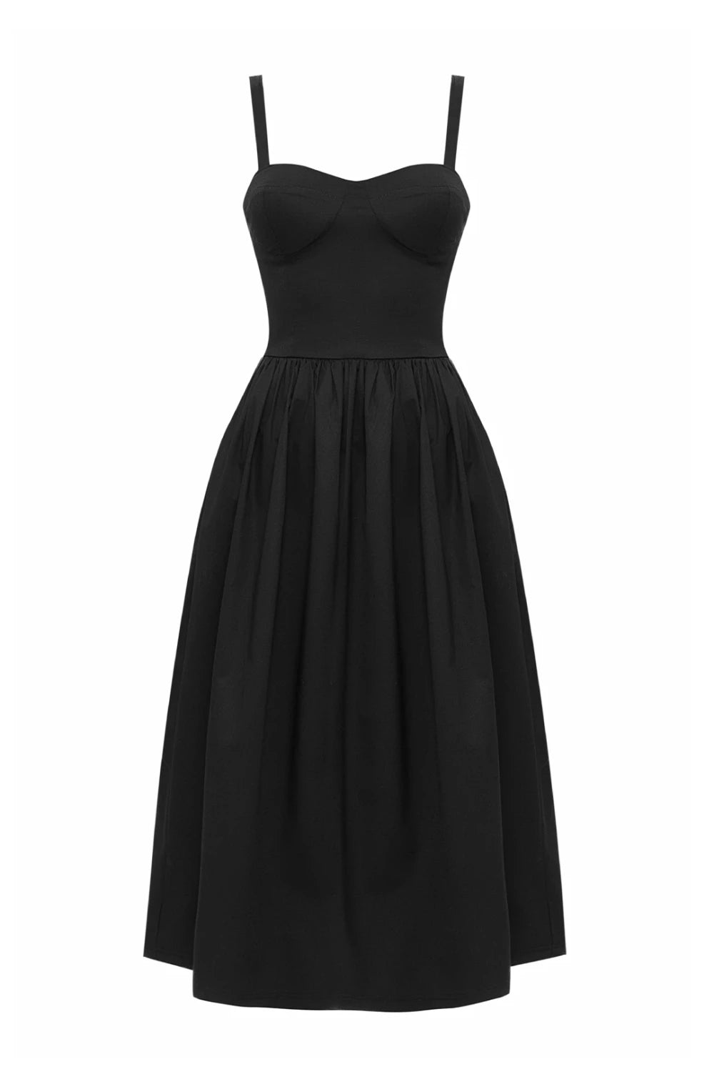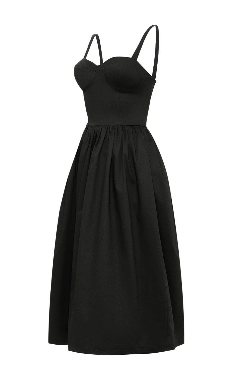 Göğüs Kuplu, Ayarlanabilir Askılı, Midi Boy Cepli Balon Elbise