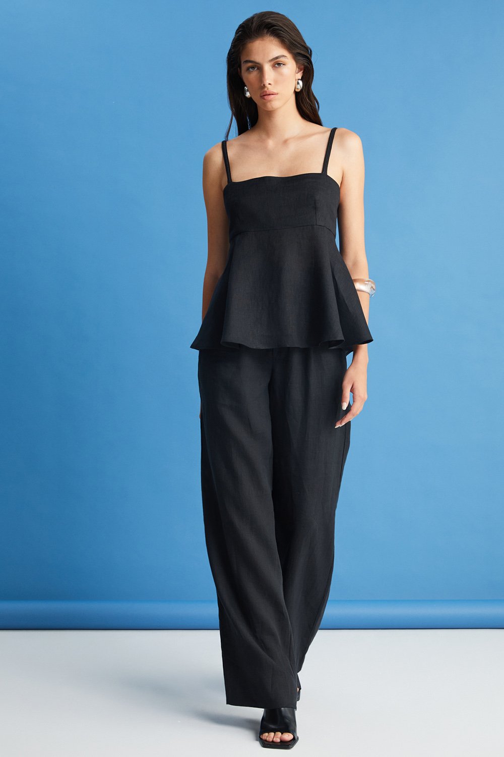 Tasarımın kumaşı keten karışımı ile vücudun hava almasını ve serin kalmasını sağlar. Ketenin pürüzsüz ve tüysüz dokusunun viscose kumaşın parlak ve kaliteli dokusu ile birleşimiyle elde edilen bu ideal kumaş karışımı sayesinde hem şık, hem de rahat bir kullanım imkanı sunulmaktadır.