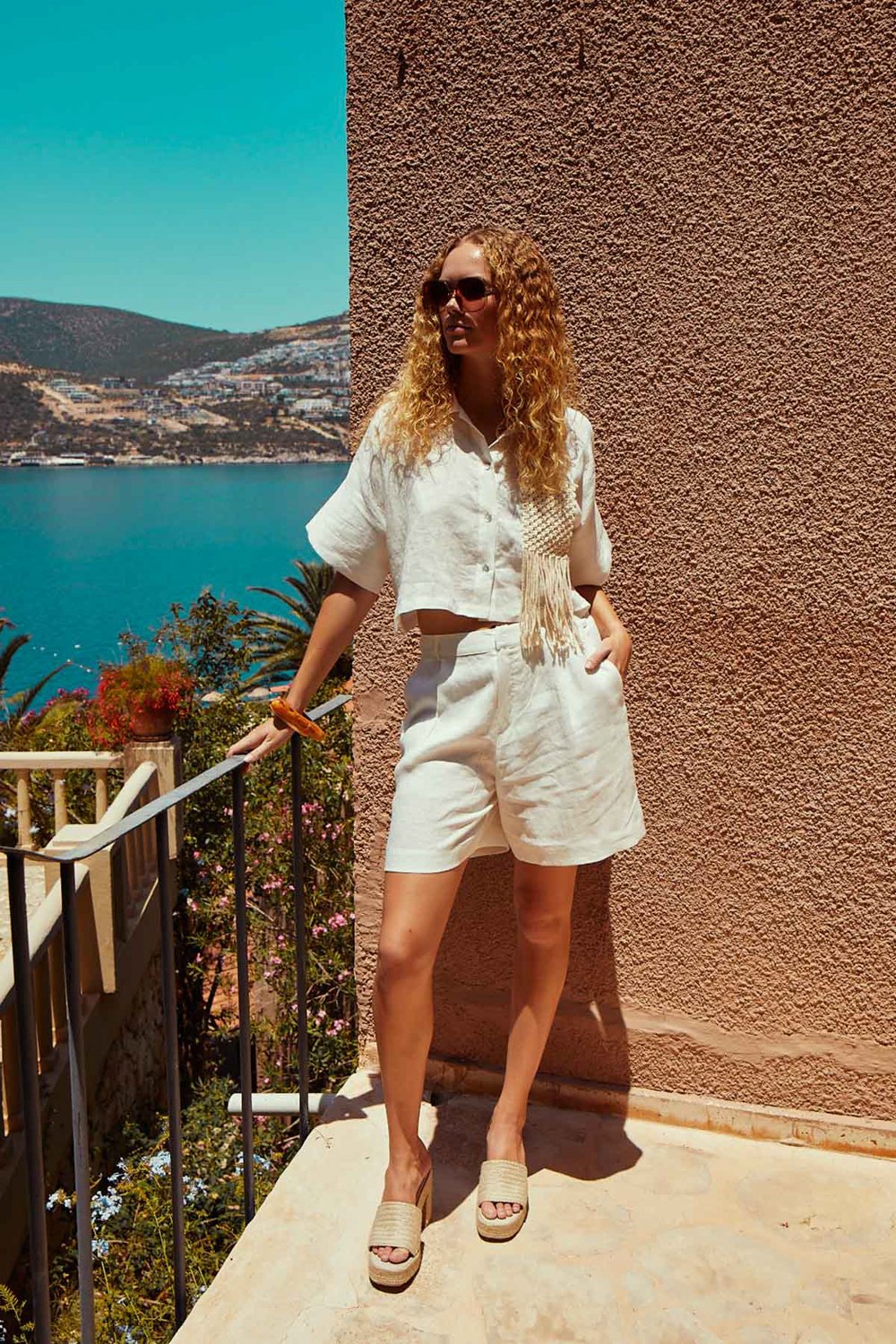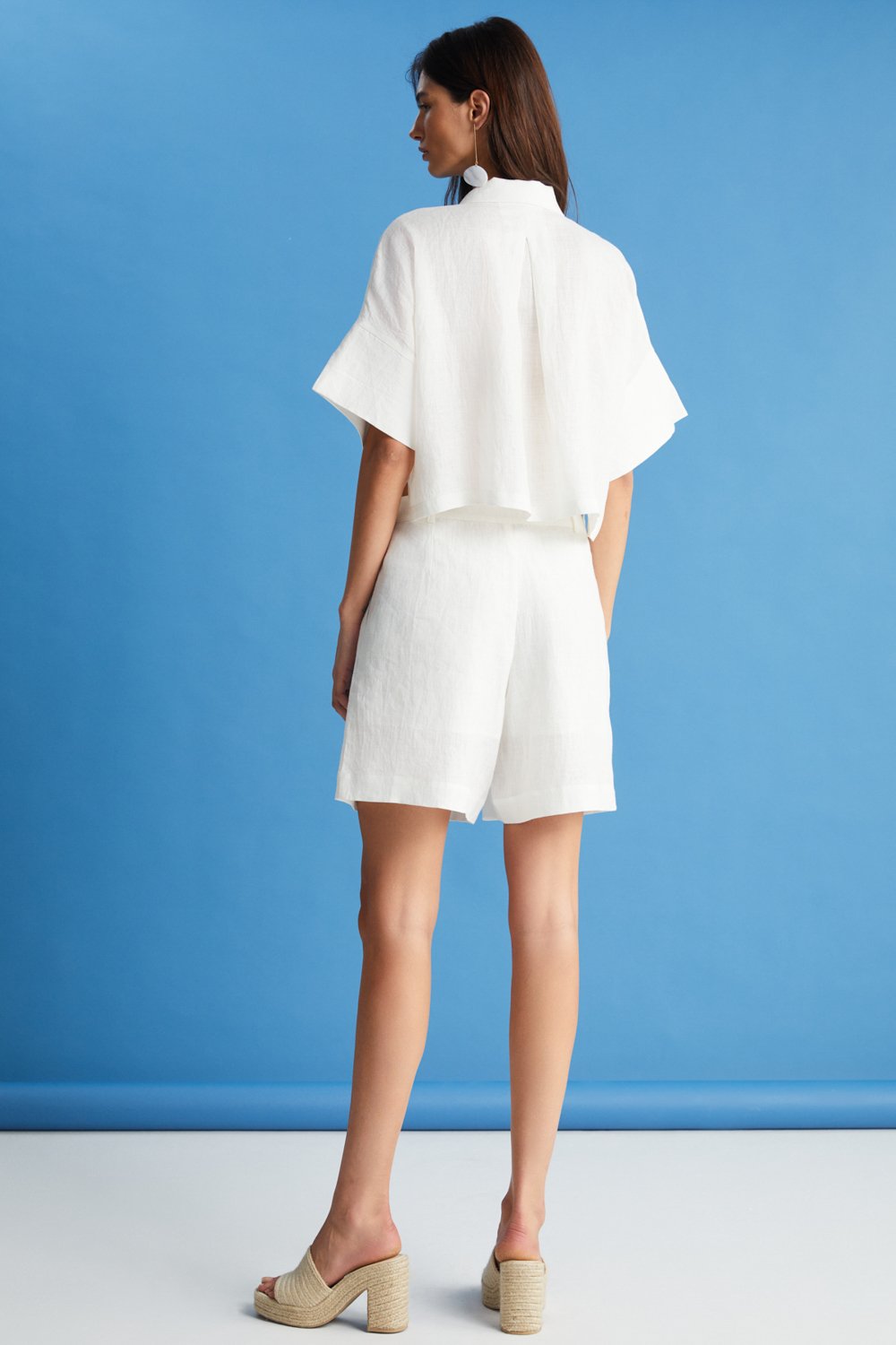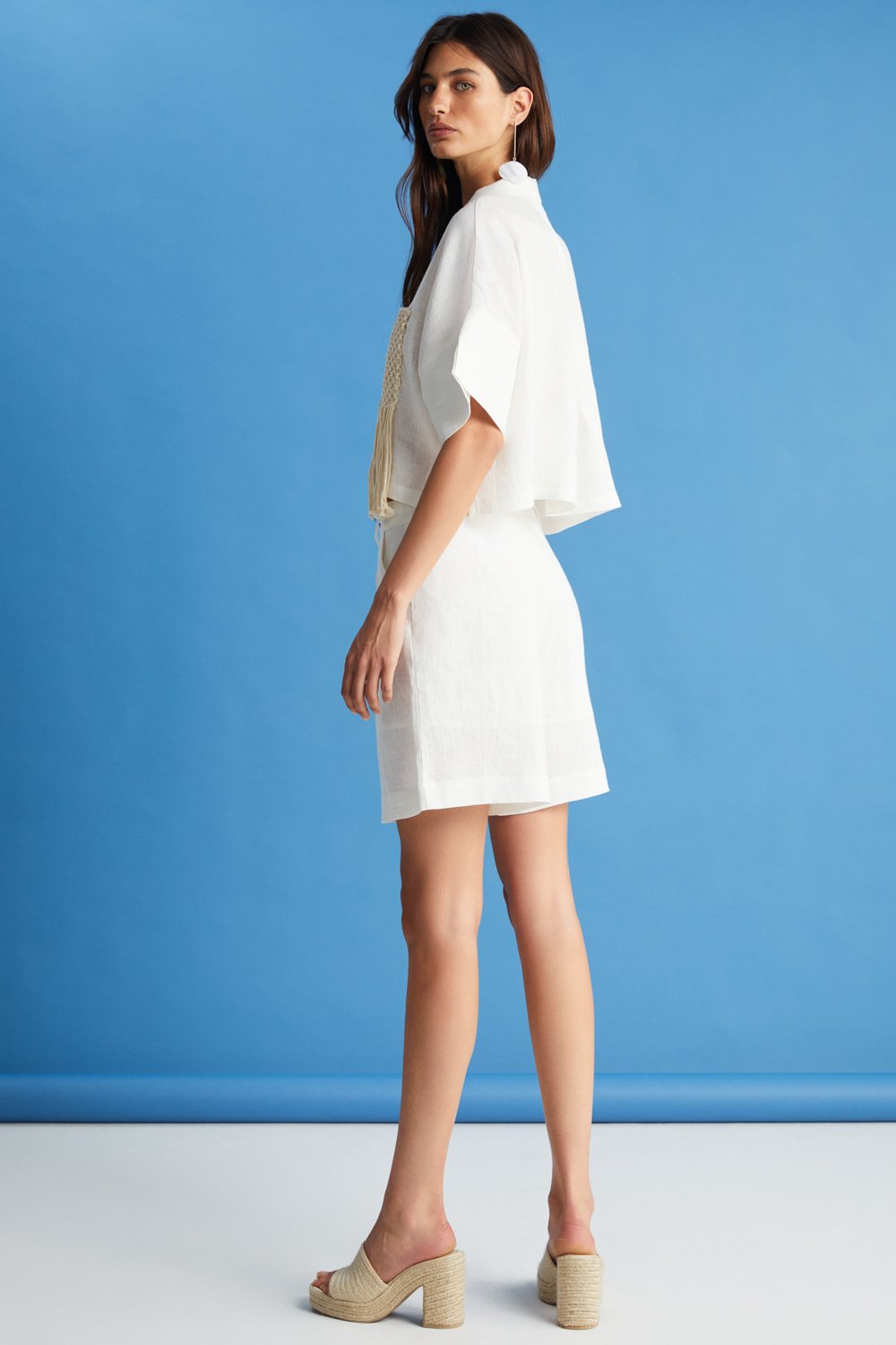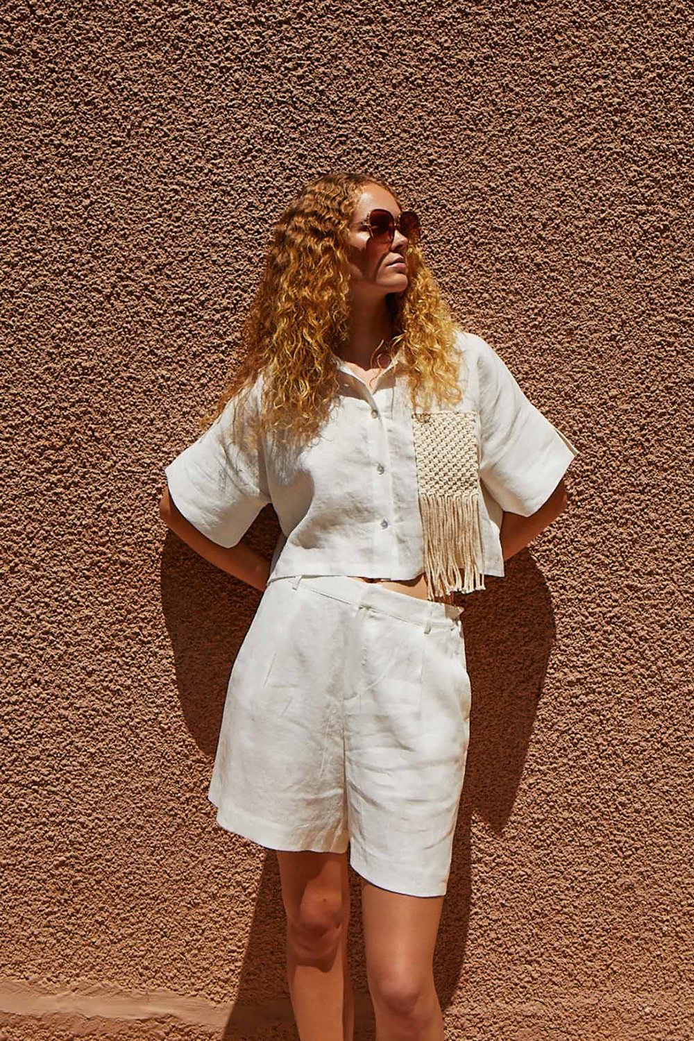 Kısa kesimli, ekru renk seçeneği ile sunulan gömleğimiz, sonsuz kıyafet ve kombin olanağı sağlayacak klasik bir parça olarak gardırobunuzun vazgeçilmezidir. %100 ketenden üretilen bu tasarımımız zarif bir yaka detayıyla ön plana çıkıyor. %100 tığ işi saçaklı cep detayıyla tamamen özgün bir stil sunuyor. Uyumlu aynı renkteki şortumuzla takım halinde kombinleyebilir veya yüksek belli pantolonlarımızla eşleştirebilirsiniz.