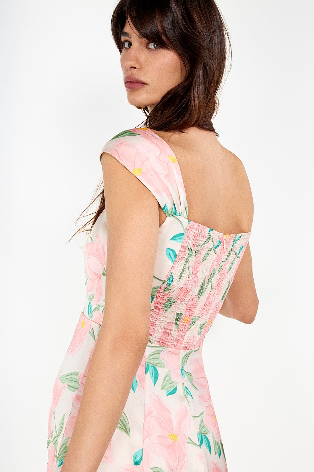 Boneqa'nın tamamen kendi tasarımı, markaya özgü çiçek tasarımı ile yaz ayları için tasarlanan bu elbise romantik esintiler taşıyor. Arkası gipeli ve önündeki kalp yaka detayı elbise tasarımını yükselten ince detaylar. Gün boyu ve gece giyilebilecek gardırobunuzda mutlaka bulunması gereken bir tasarım.