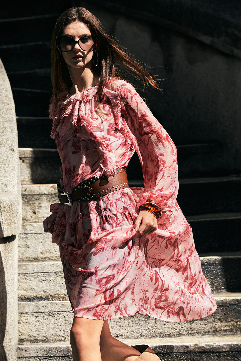 Sezonun trendlerini yansıtan ve kadın elbise modelleri arasında öne çıkan bu tasarım, markanın özel "EBRU" baskısıyla bezenmiş transparan yüzeyiyle zarafeti yeniden tanımlıyor. Fırfır detayları ve hacimli kolları, romantik ve sofistike bir siluet oluştururken, bisiklet yaka tasarımıyla sade ama etkileyici bir görünüm sunuyor.