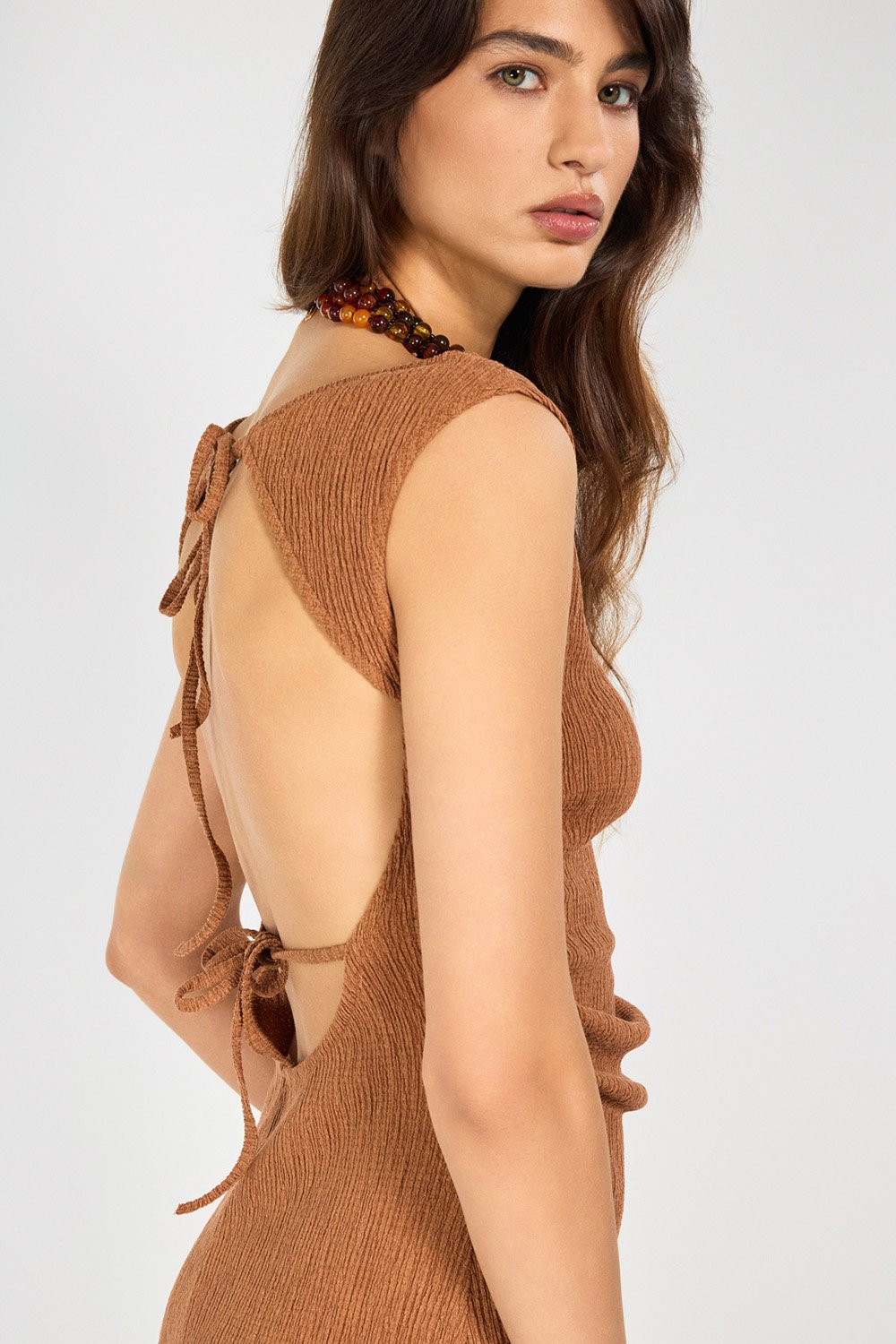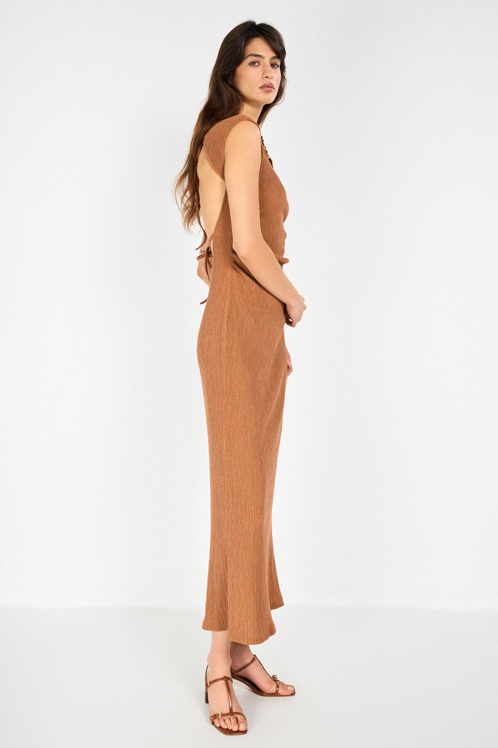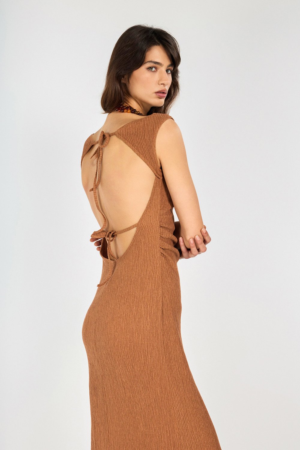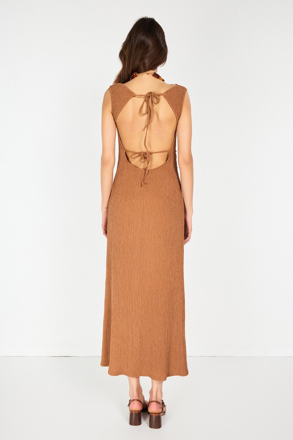 Sırtı Açık Tarçın Maxi Elbise