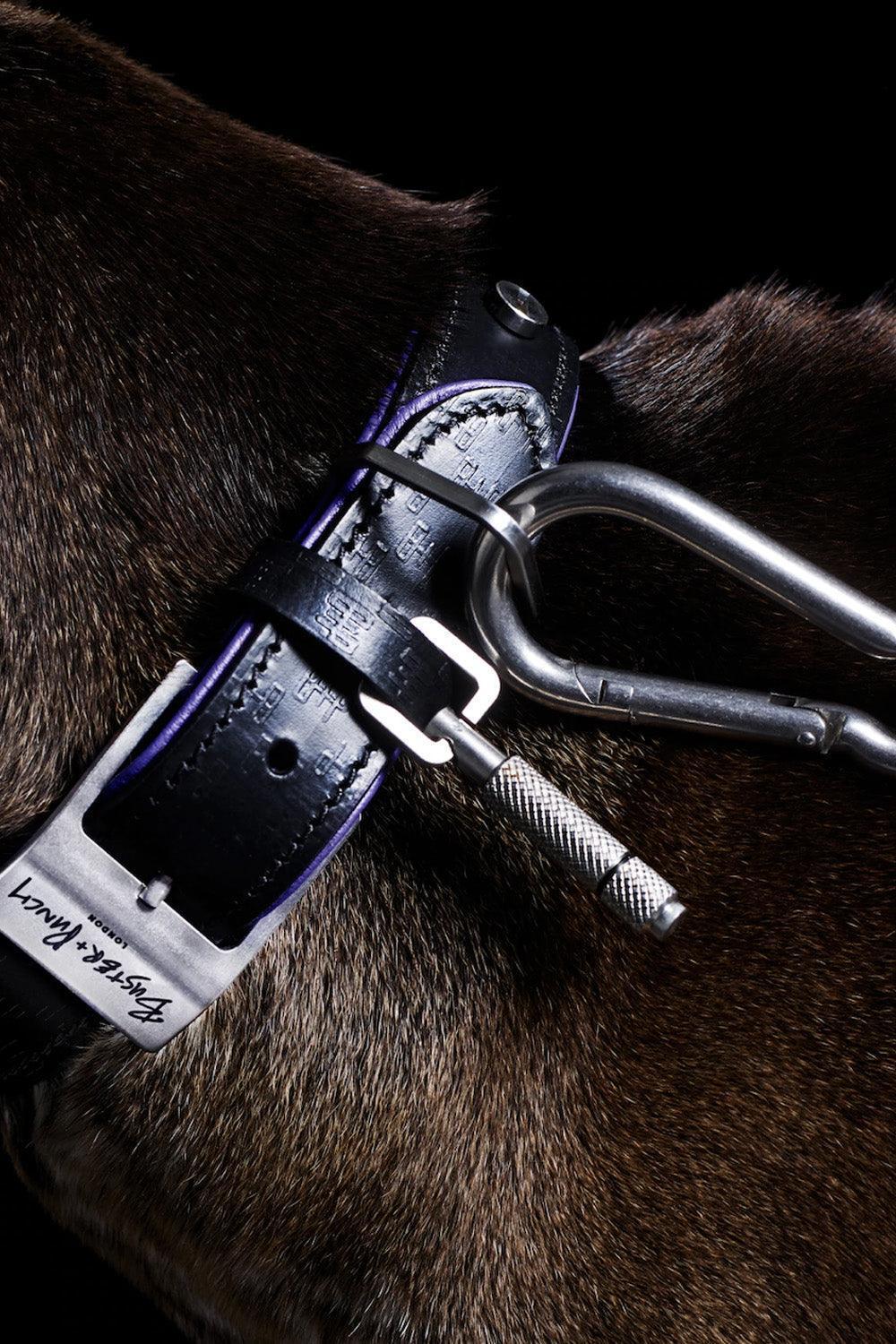 Dog Collar is a dog collar made of high quality leather, hard brass and steel. The collar, which is decorated with B+P exclusive hard brass or steel coin screws, has a special diamond-cut design detail at the end, which can be screwed to store all the valuable details of your dog. Made of black and purple soft leather, it won't hurt your friend's delicate neck .