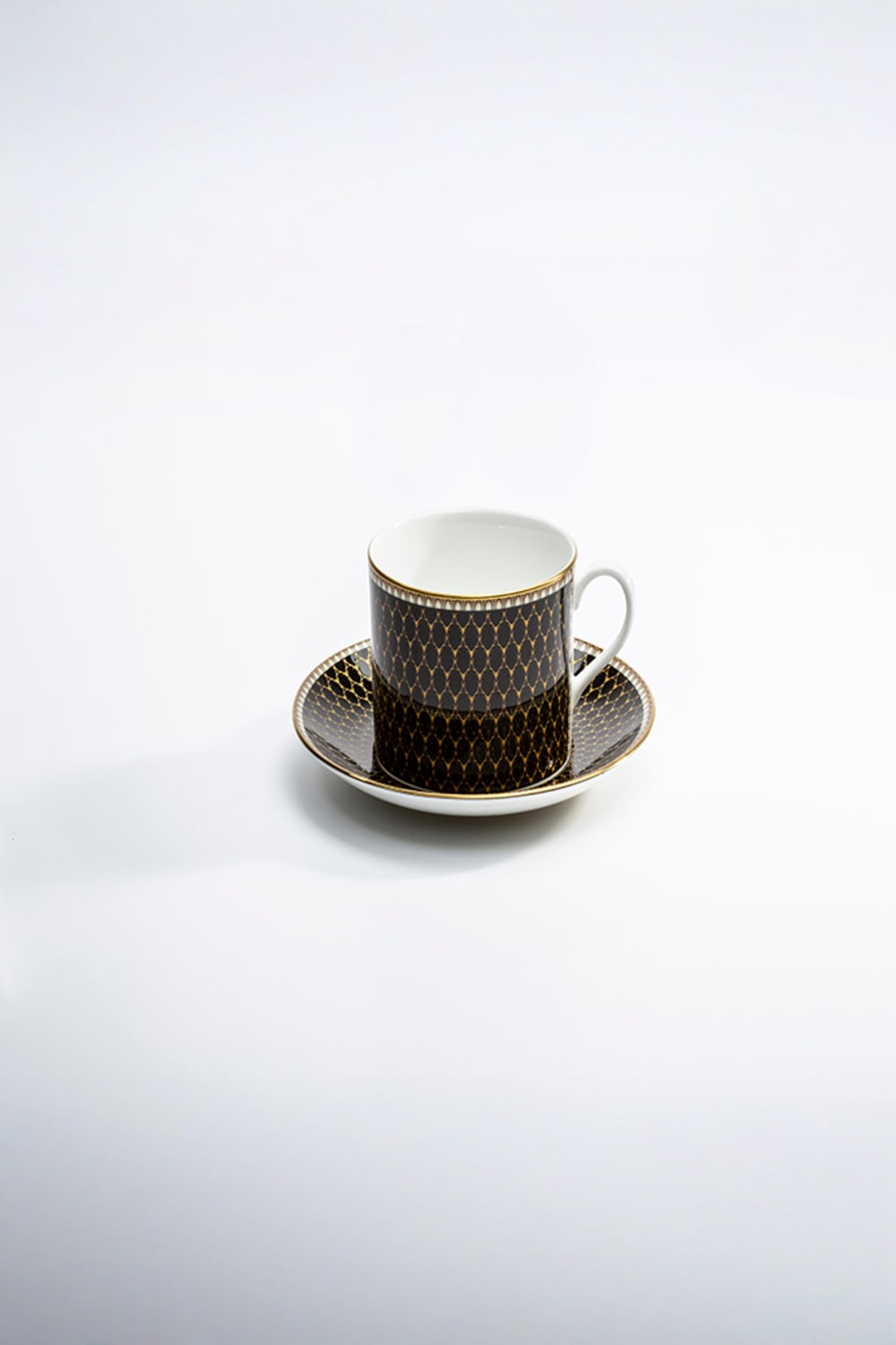 Antler Trellis - Black -Gold - Tea Cup & Saucer