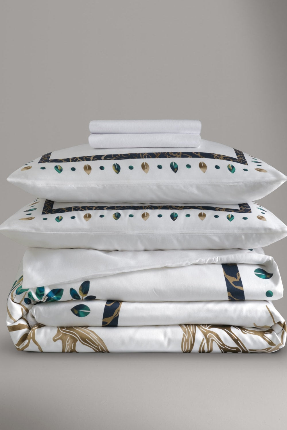 1 nevresim (200x220cm), 1 çarşaf (240x260cm) ve 2 yastık kılıfı (50x70cm) içerir