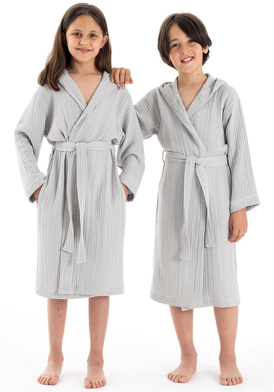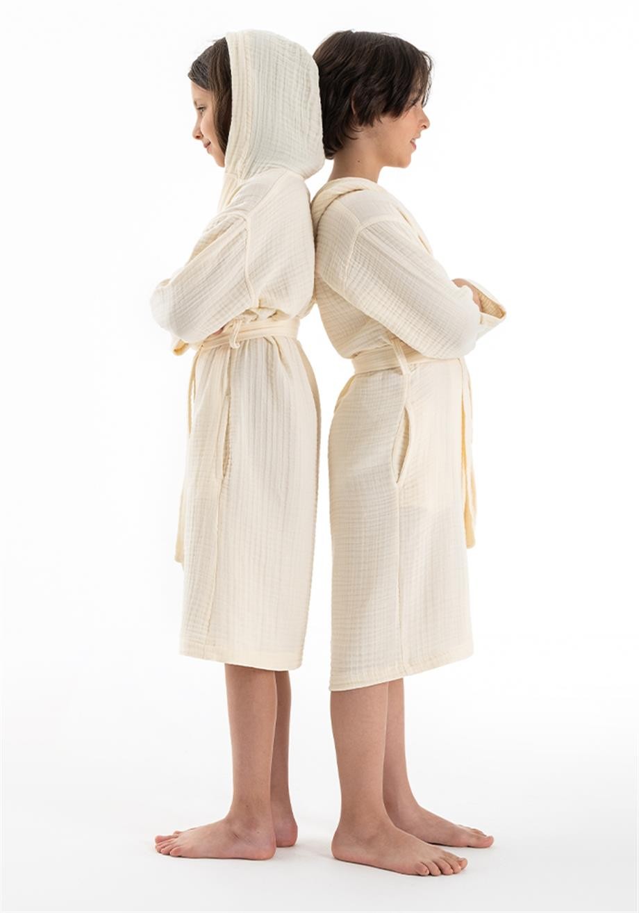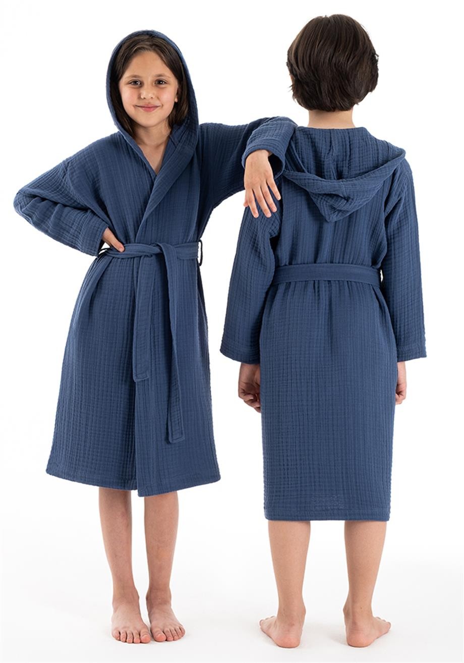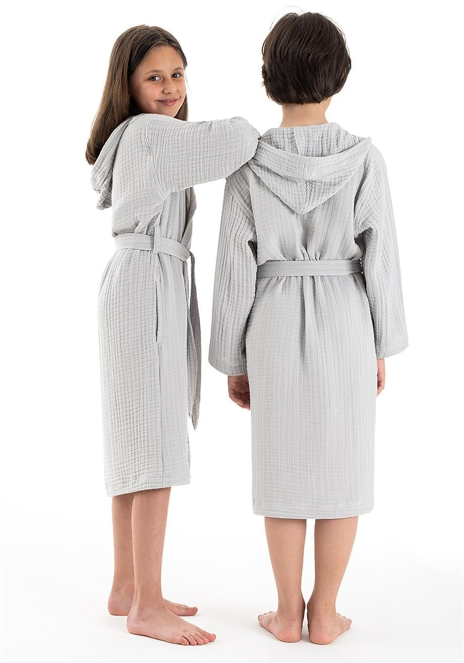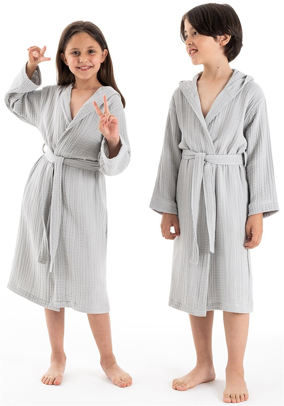 Kapşonlu Müslin Çocuk Bornoz