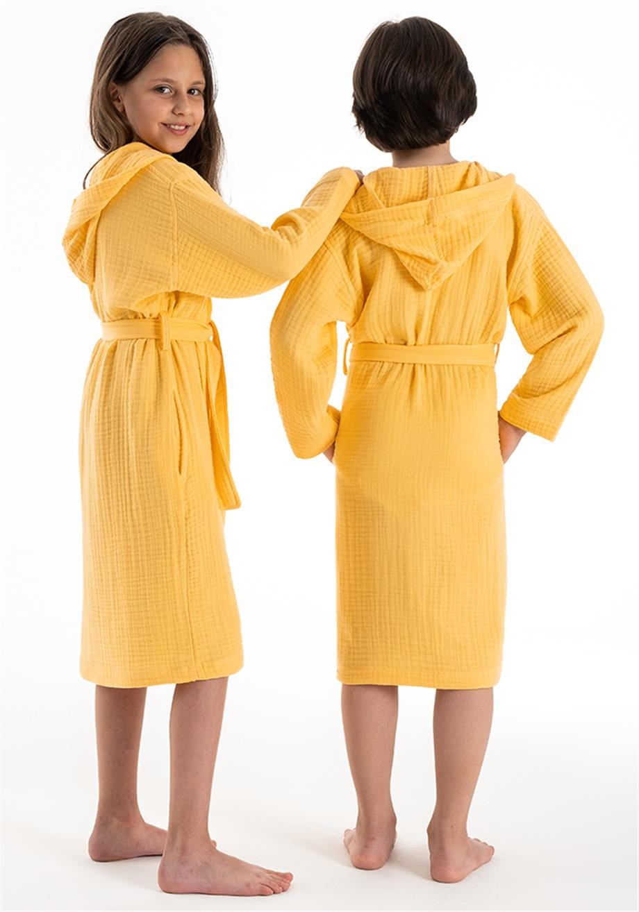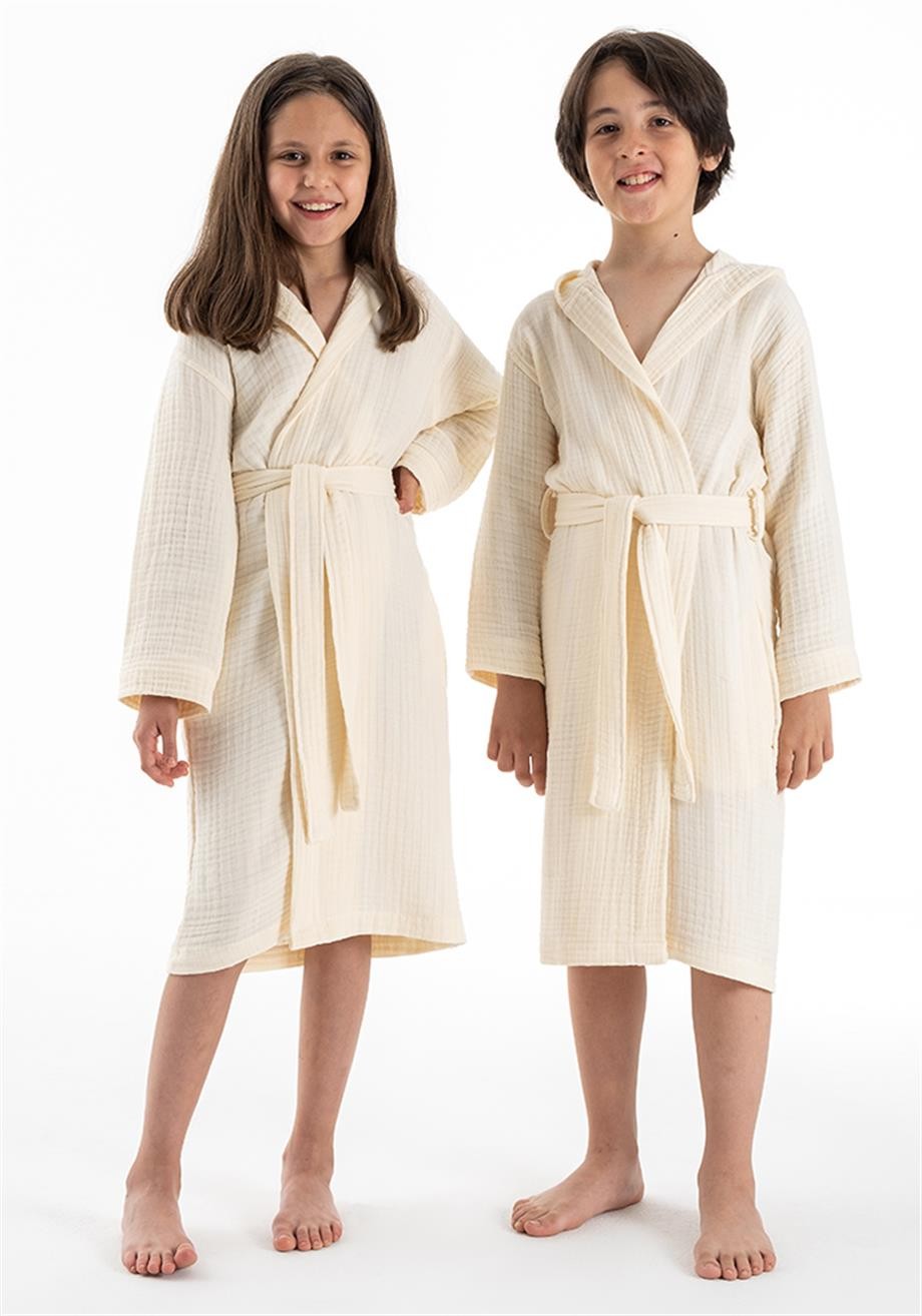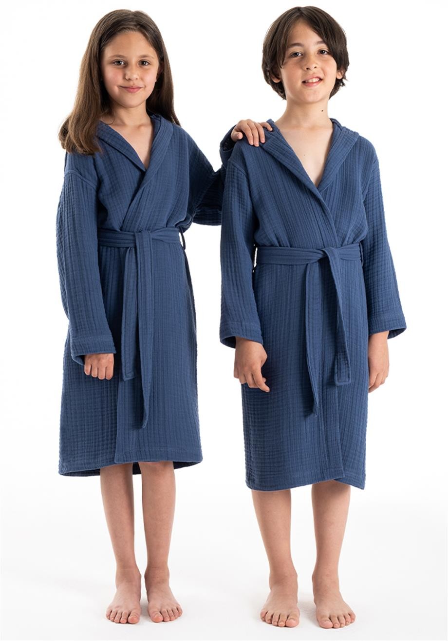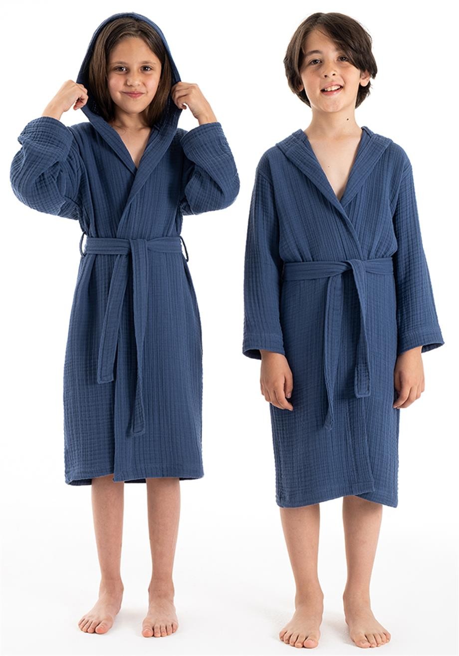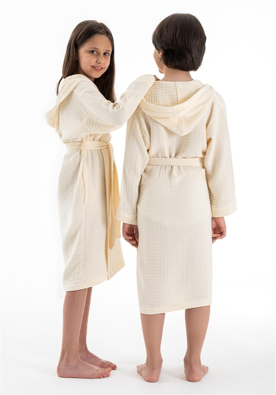 Kapşonlu Müslin Çocuk Bornoz