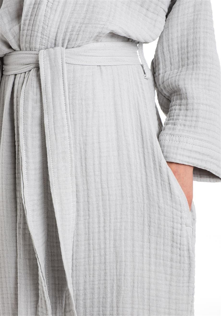 Hafif ve Nefes Alabilen: Müslin kumaşının hafif ve nefes alan yapısı, bornozunuzun sizi rahat ettirecek şekilde hava geçirgenliği sağlamasını sağlar. Bu, bornozunuzun terlemeyi azaltarak cildinizin nefes almasına yardımcı olur.