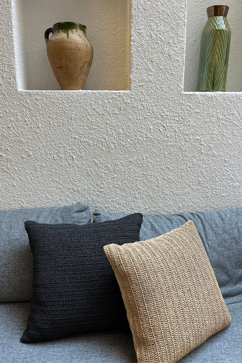 Bohem El Yapımı Kare Jüt Bej Kırlent
