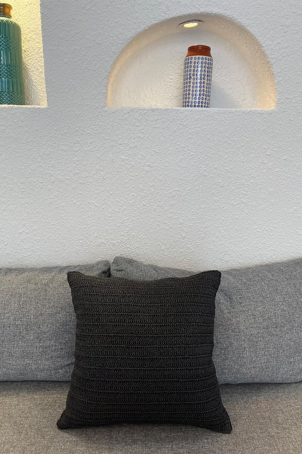 Bohem El Yapımı Kare Jüt Siyah Kırlent