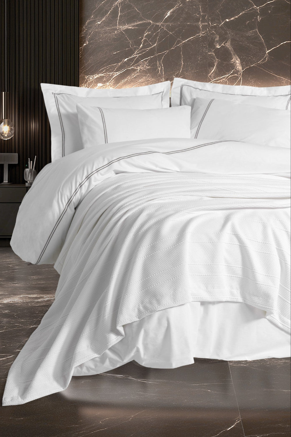 Classic Çift Kişilik Pikeli Nevresim Takımı Mehveş Beyaz