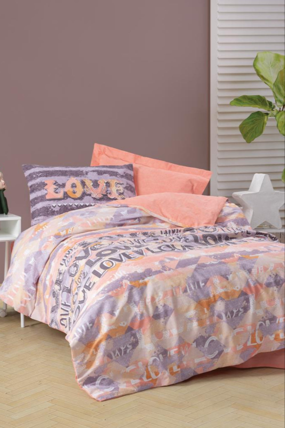 Genç Odası Tek Kişilik Nevresim Takımı Love Pudra