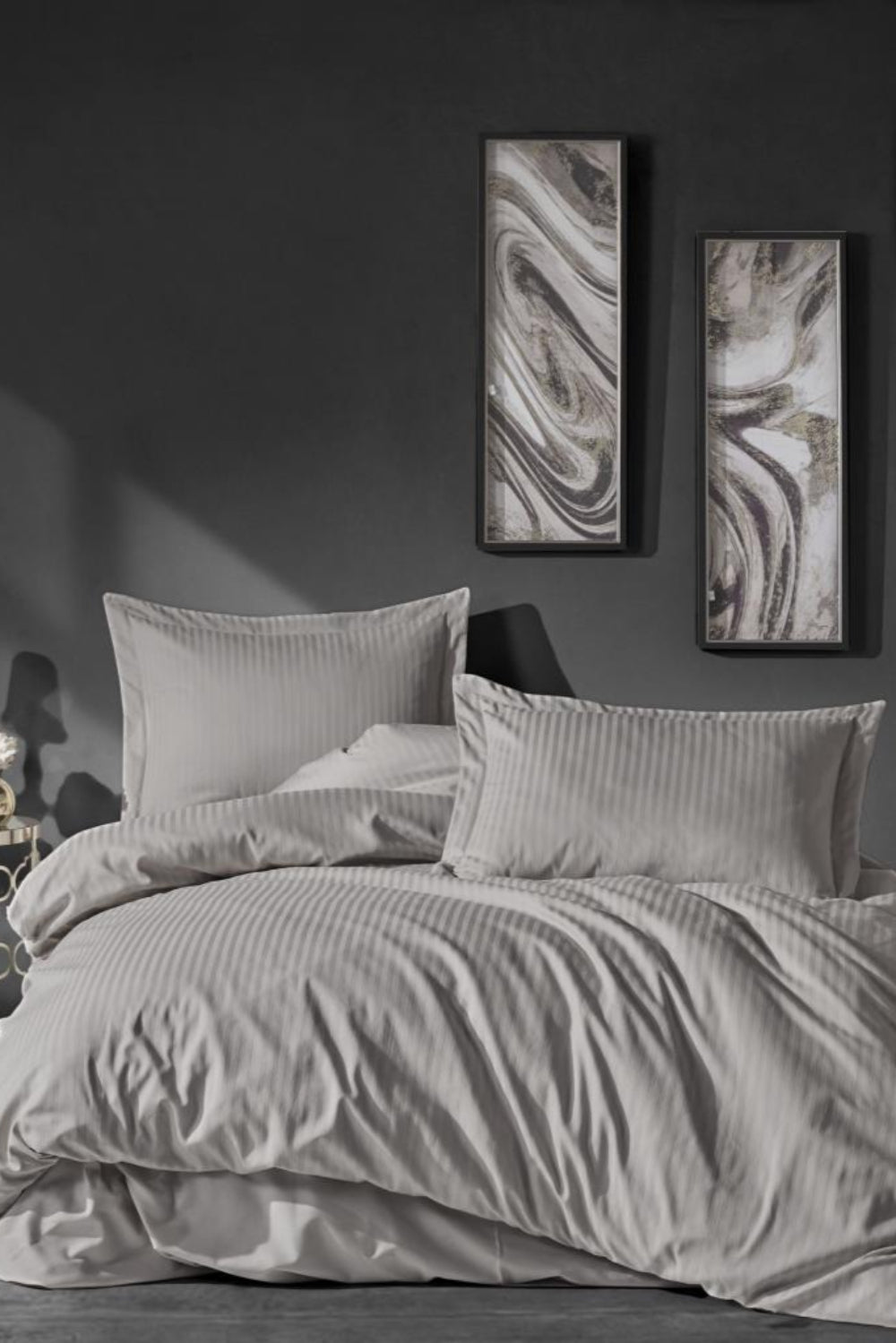 Elegant Stripe Saten Çift Kişilik Nevresim Takımı Bej