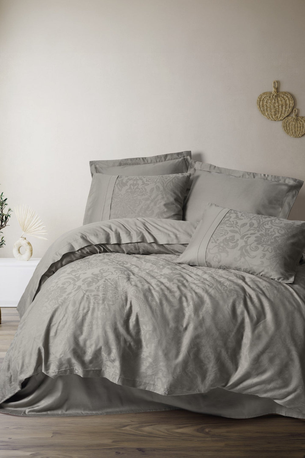 Jakarlı Saten Çift Kişilik Nevresim Takımı Demure Vizon