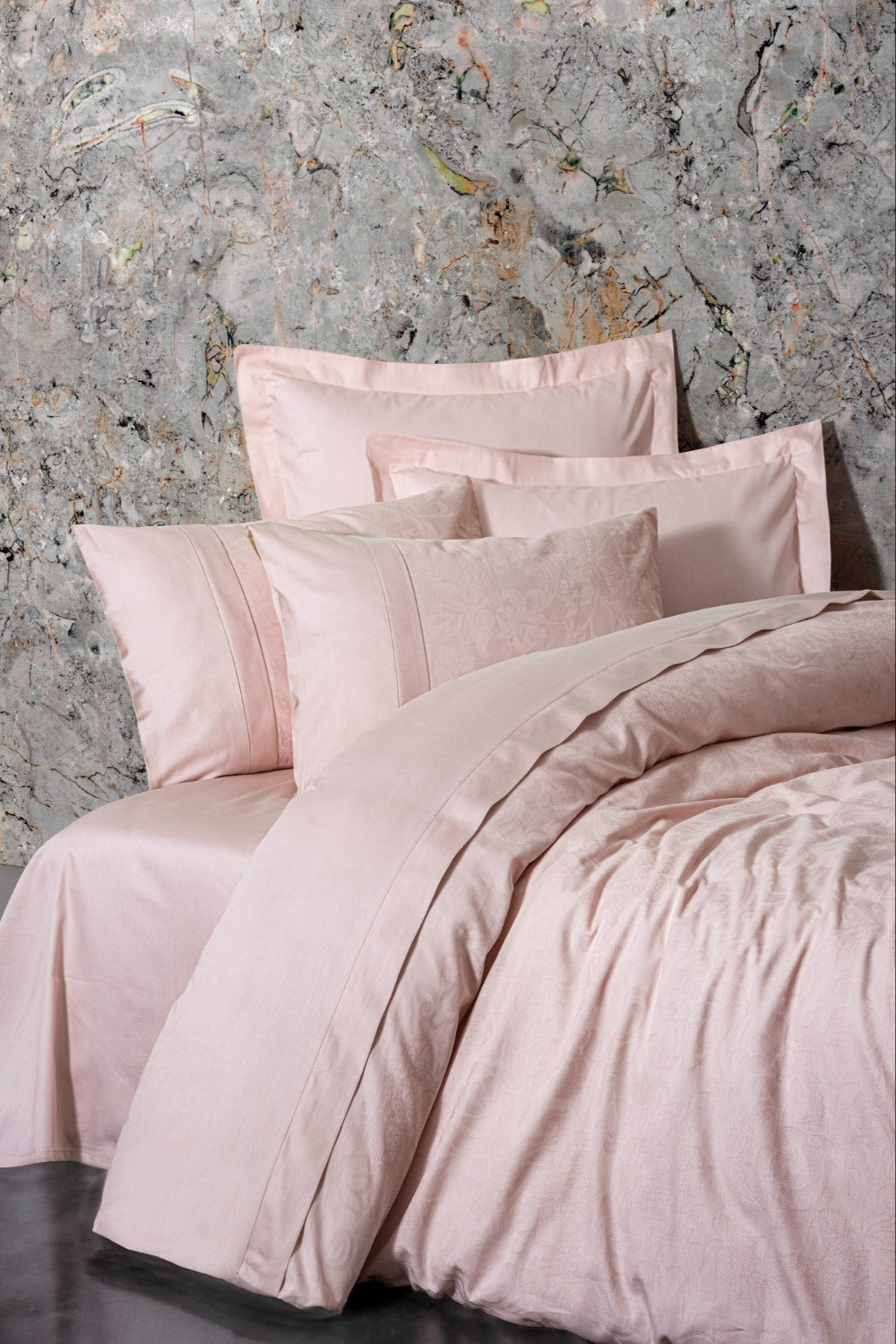 Jakarlı Saten Çift Kişilik Nevresim Takımı Jana Pudra