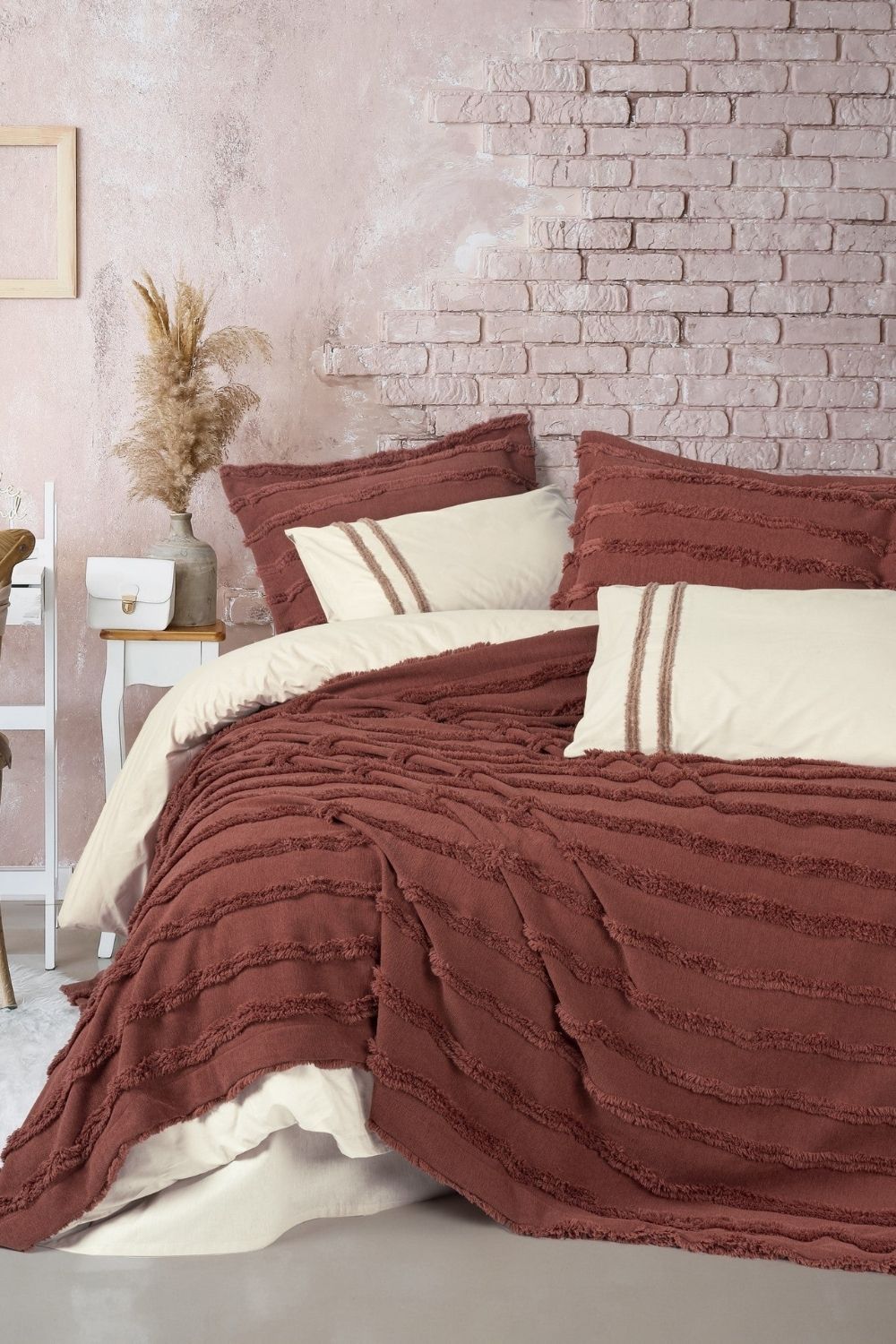 - Yatak Örtüsü ve Dekoratif Yastık Kılıfı: %100 Polyester Jakarlı Kabartma Desenli